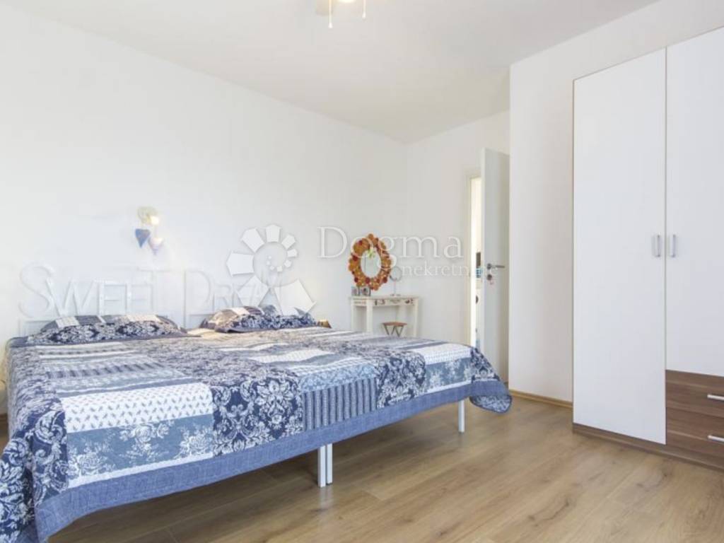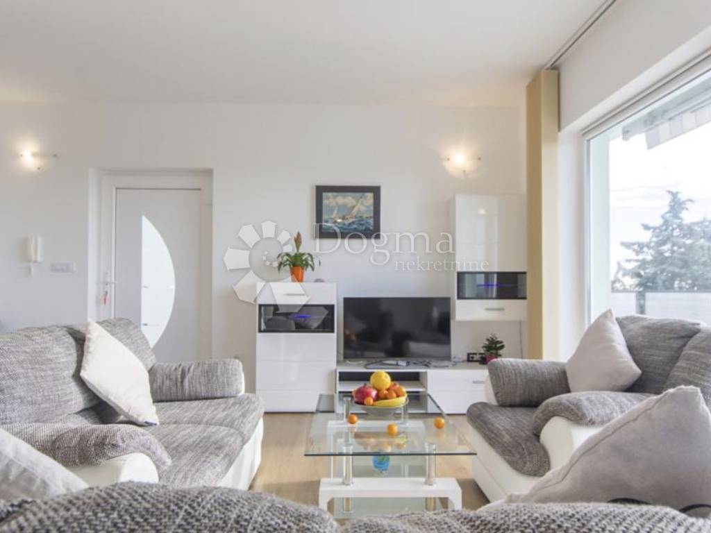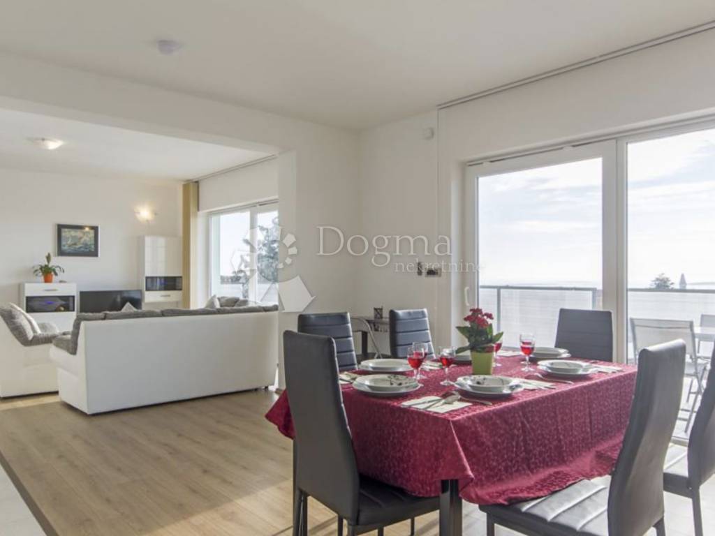 The living room leads to an open terrace with a view of the sea and Medulin.