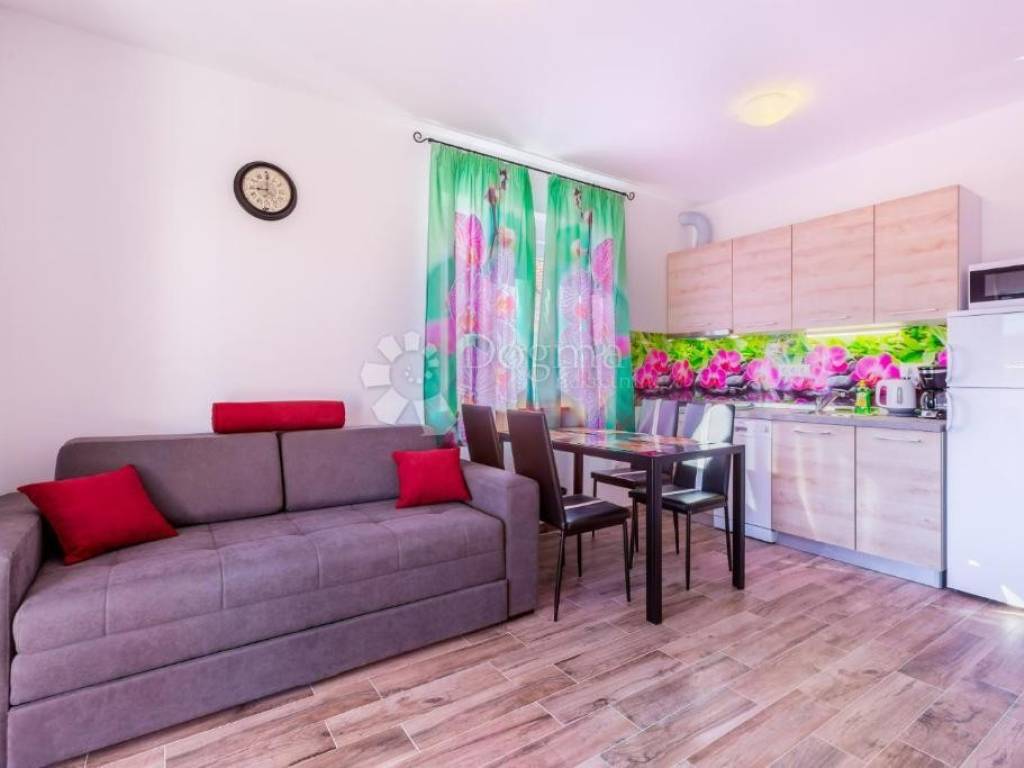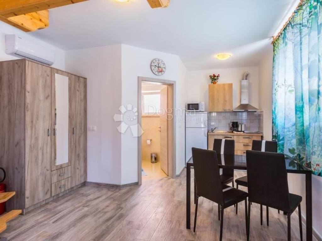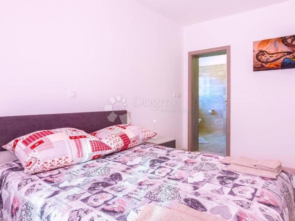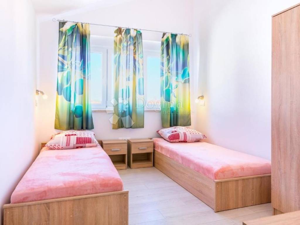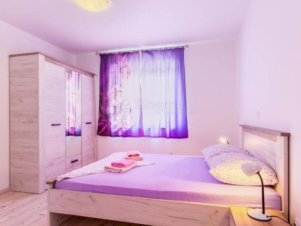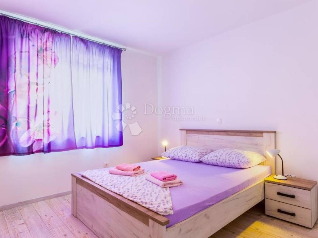 Detached house with 7 apartments with a total net area of 478 m, located on a large plot of 1054 m. Apartment layout: BASEMENT: Apartment (35 m) for 2 people - kitchen with living room, bathroom and covered terrace. HIGH GROUND FLOOR: Apartment (35 m) for 2-4 people - bedroom, kitchen with living room, bathroom and balcony. Apartment (45 m) for 2-4 people - bedroom, kitchen with living room, bathroom, separate toilet and balcony. FIRST FLOOR: Apartment (63 m) for 4-6 people - two bedrooms, kitchen with living room, two bathrooms and balcony. Apartment (42 m) for 2-4 people - bedroom, kitchen with living room, bathroom, separate toilet and balcony. SECOND FLOOR: Apartment (63 m) for 4-6 people - two bedrooms, kitchen with living room, two bathrooms and balcony. Apartment (58 m) for 4 people - one bedroom with an additional gallery, kitchen with living room, two bathrooms and a balcony. All apartments are modernly decorated and are sold fully furnished. The property has been successfully rented to tourists for many years, with a well-established business, which makes this property an excellent opportunity for investors. There is an option to purchase the associated company. ADDITIONAL INFORMATION: Bijeca Beach is only a 5-minute drive or 15-20 minute walk away. Parking spaces are provided for all apartments and guests in front of the house. Ownership is neat, 1/1, with complete documentation. Possibility of dividing individual apartments into separate residential units. For additional information or to arrange a viewing, please feel free to contact us! M. +385 91 732 55 77