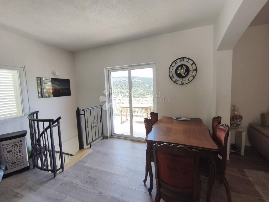 We are offering for rent a house consisting of three bedrooms, a spacious kitchen with a dining area and living room, two bathrooms, and a large terrace with a stunning view. Each room in the house is equipped with its own air conditioning unit and underfloor heating, ensuring a comfortable stay throughout the year. The rear part of the yard includes a gravel parking area with enough space for at least four vehicles, while the front side features a new overflow swimming pool. Next to the pool, there is a fireplace with a covered area, perfect for hosting gatherings, and this space also includes a small WC. The photos showcase the charming ambiance surrounding this house. Although located in a peaceful setting, the house is only 600 meters from the sea, and all necessary amenities, including the center of Marina, are just a few minutes' drive away. This house offers an ideal opportunity for a peaceful family life or as an investment in tourism.