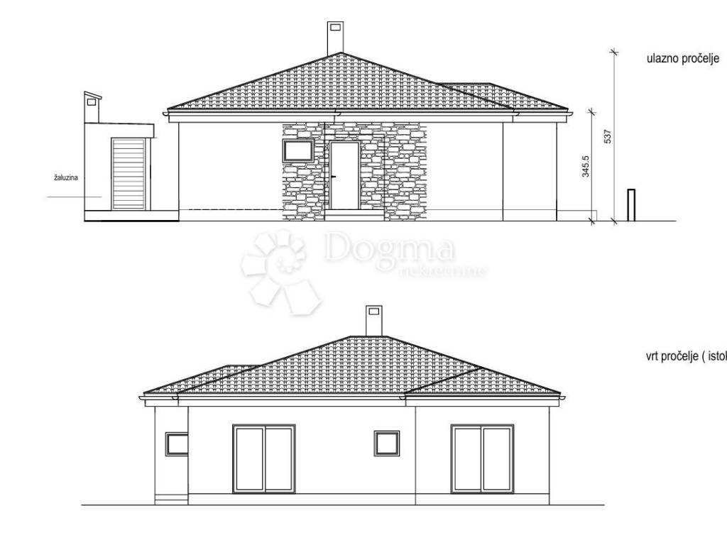 Na kraju pitomog sela nedaleko Kanfanara smještena je građevinska parcela s pravomoćnom dozvolom za gradnju prizemne kuće veličine 105 m. Kuća je koncipirana kao nekretnina s dvije spavaće sobe, kupaonicom, kuhinjom, blagovaonicom i dnevnim boravkom otvorenog tipa, radnom sobom ili spremištem po izboru, vešerajem s toaletom i dva hodnika.