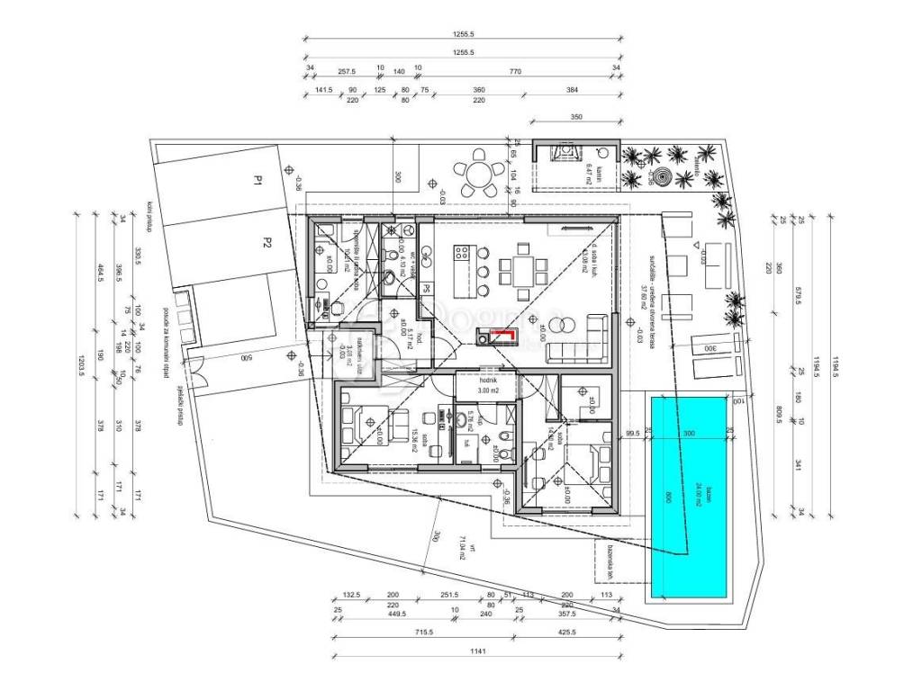 Okućnica sadrži bazen od 24 m, vrtni roštilj s prostorom za 'dining al fresko' i nekoliko parkirnih mjesta.