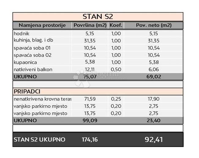 The total gross area of the apartment is 174.16m, with a net sales area of 92.41m.