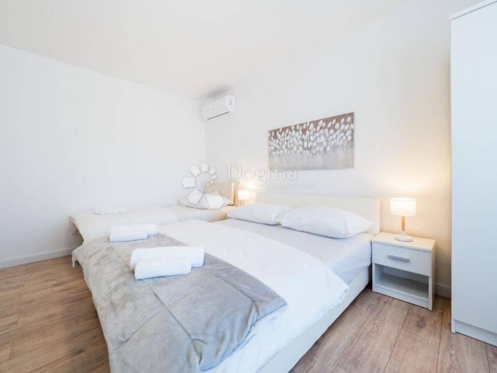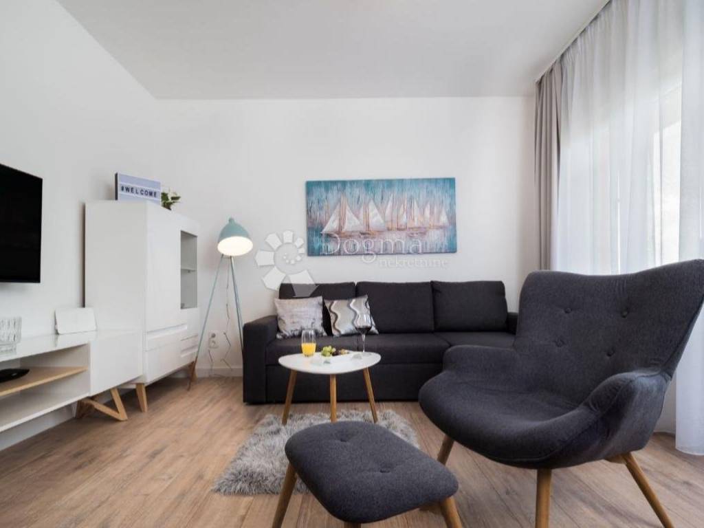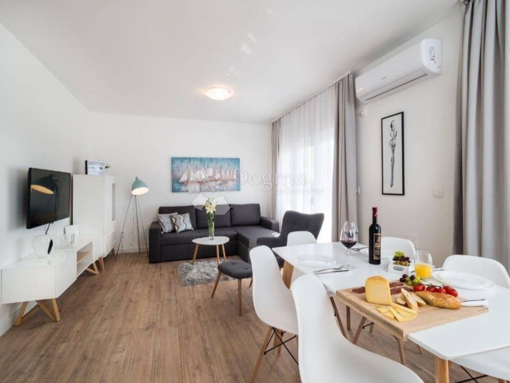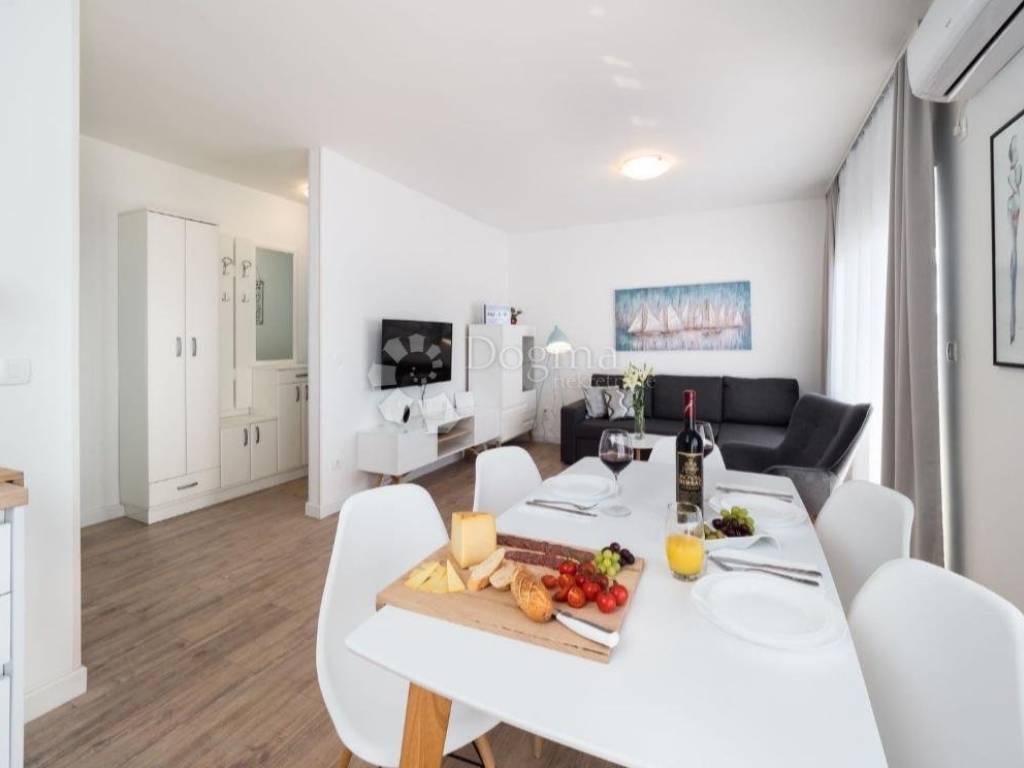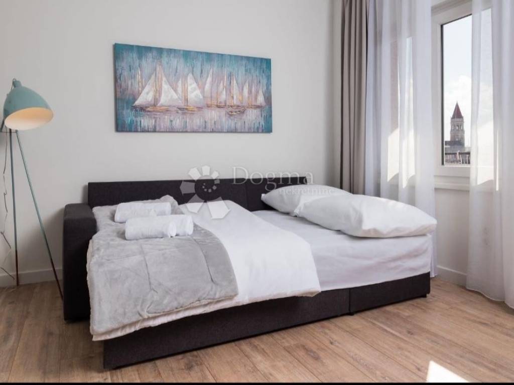 For sale is a newly renovated apartment with a sea view, just a few minutes from the center of Trogir. It is located on the third floor of a building without an elevator. The apartment has 63.18m2 and consists of an entrance area, bathroom with toilet, kitchen with dining room, living room and one spacious bedroom, as well as a loggia with a beautiful sea view, which all rooms in the apartment have access to. The apartment has an excellent layout and it is possible to get another room by partitioning and adjust the apartment to your own needs. The apartment is sold fully furnished. An additional advantage of the apartment is its location, just a few minutes from the sea and the center of Trogir, so all necessary amenities are nearby. The apartment also has a woodshed, and there is enough parking space around the building. This property is ideal for family life but also an excellent investment opportunity due to its tourist potential.
