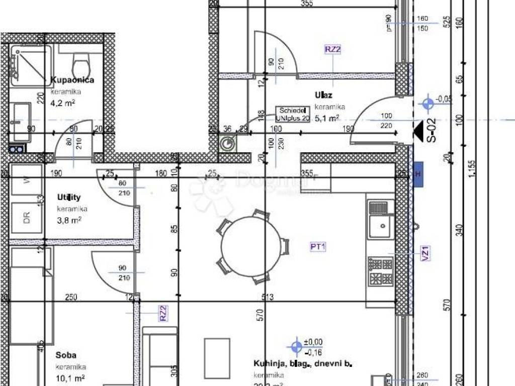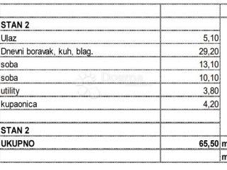 Apartment S2 has a total area of 65.50 m and is located on the ground floor of the building. The apartment comes with a yard of 185 m. It consists of two bedrooms, an open-plan living room with a dining area and kitchen, a bathroom, a storage room, a hallway, and a spacious garden.