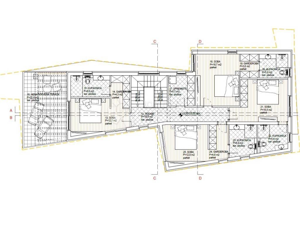 The villa will be equipped with top-quality materials, including premium ceramics and bathroom fittings, as well as a modern air conditioning system that ensures year-round comfort. Underfloor heating is provided by a heat pump throughout the property, and solar panels are installed for eco-friendly water heating. The garage is equipped with a charging station for electric vehicles, and the villa features electric roller shutters.