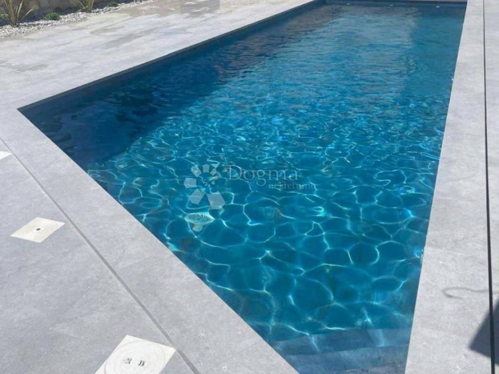 The yard is carefully landscaped, with carefully designed horticultural details and ambient lighting, and the entire area is fenced off for privacy. In the garden there is a swimming pool with a sunbathing area and parking spaces. The house comes fully equipped and furnished, with underfloor heating that ensures optimal comfort during the colder months.