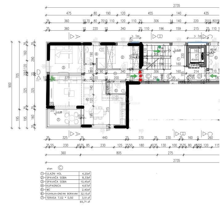 The apartment is equipped with electric underfloor heating in the entire space, and high-quality three-layer carpentry is installed for better insulation. Also, the first phase of air conditioning installation will be completed.