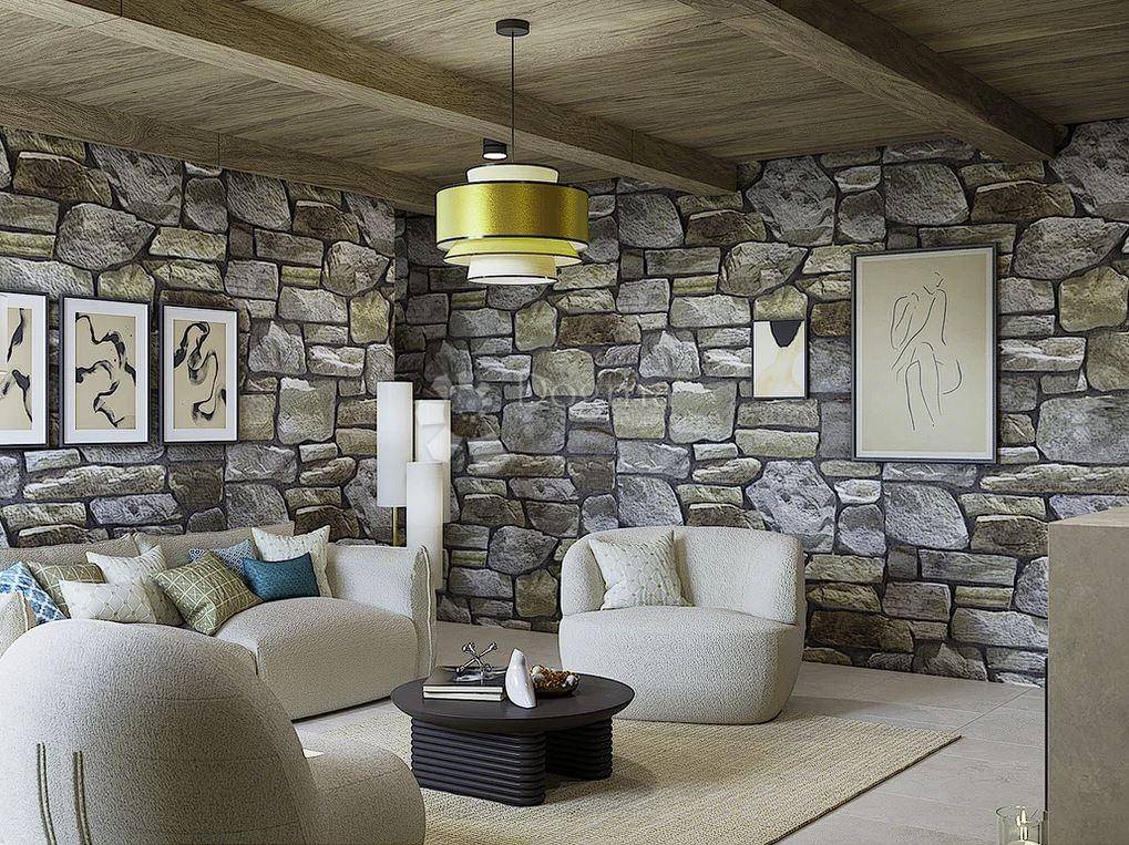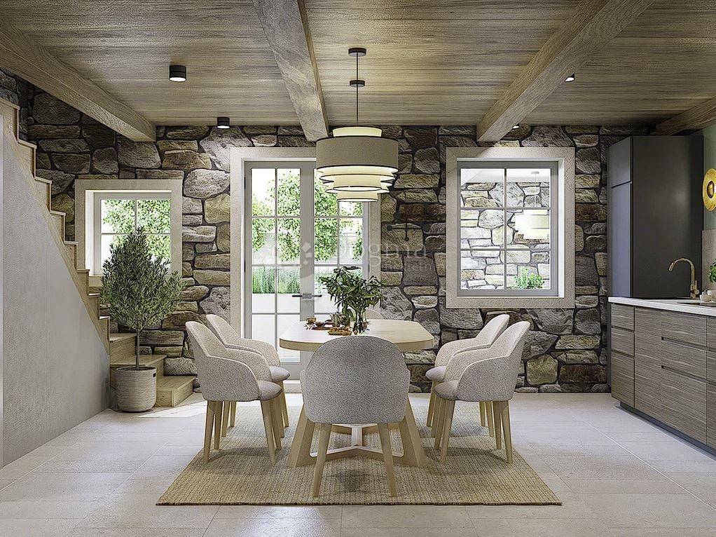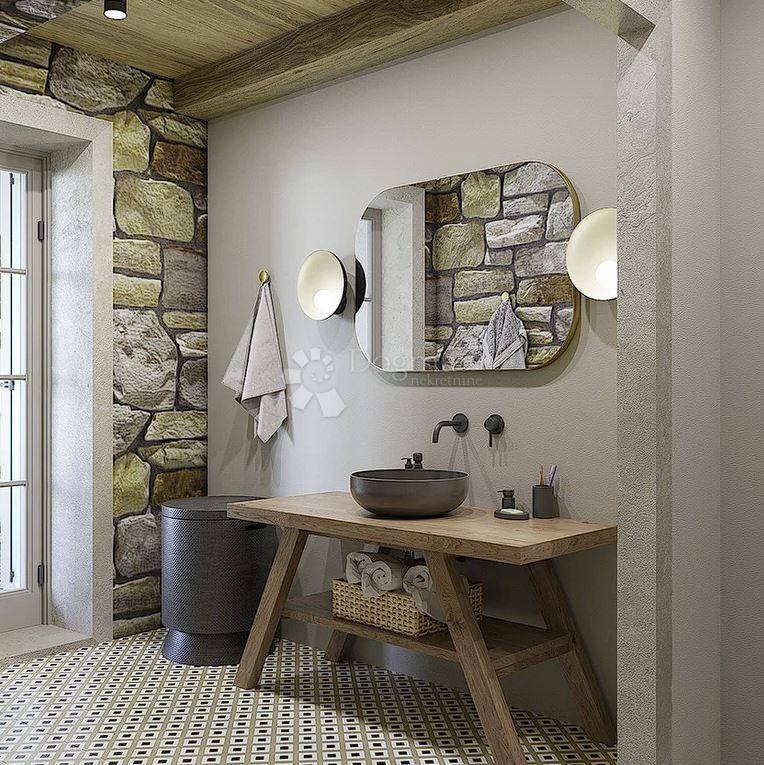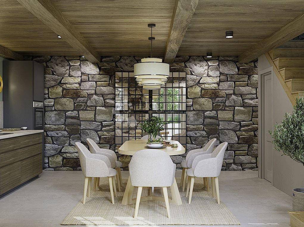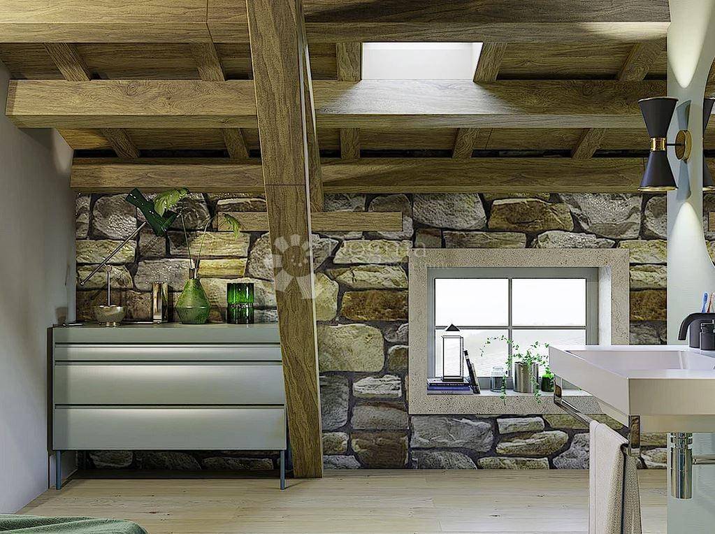 The property is enclosed by a stone wall, ensuring privacy and tranquility, while lush greenery will be planted as a natural hedge. The garden and ground floor will be adorned with autochthonous Istrian stone, and the exterior carpentry will be crafted from wood, emphasizing a harmonious blend of tradition and contemporary design.