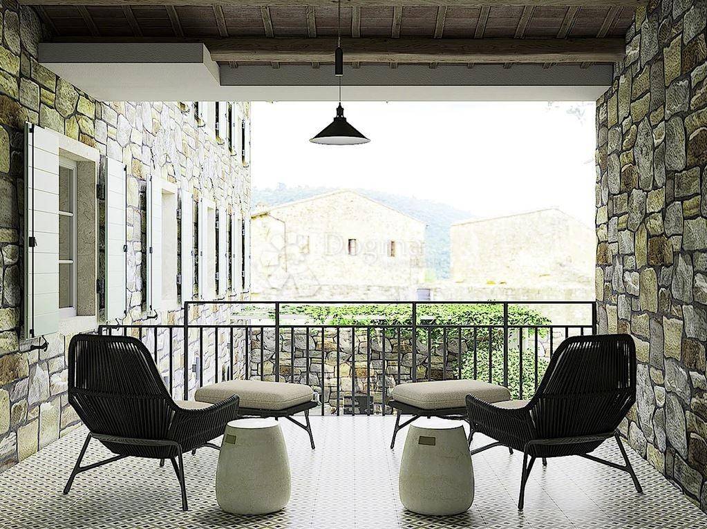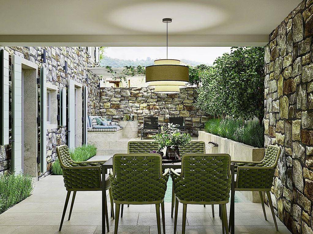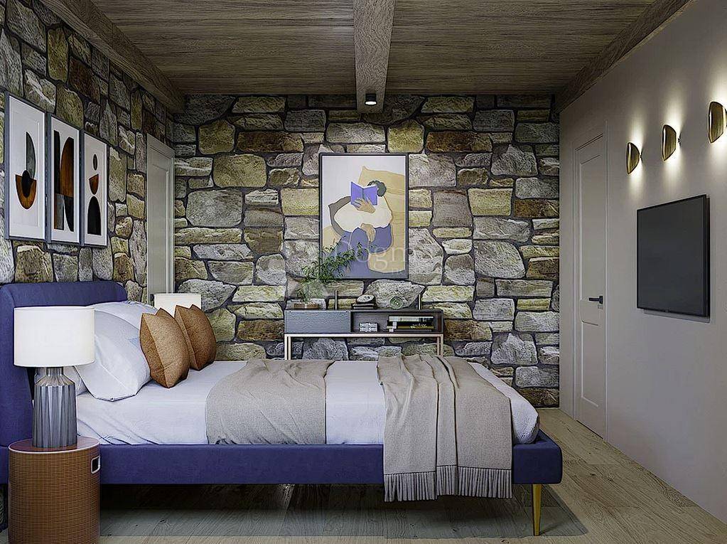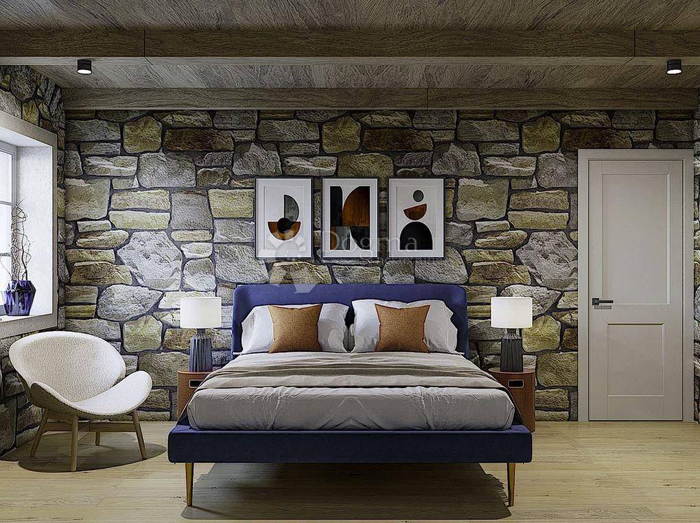 The property is enclosed by a stone wall, ensuring privacy and tranquility, while lush greenery will be planted as a natural hedge. The garden and ground floor will be adorned with autochthonous Istrian stone, and the exterior carpentry will be crafted from wood, emphasizing a harmonious blend of tradition and contemporary design.