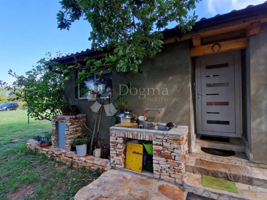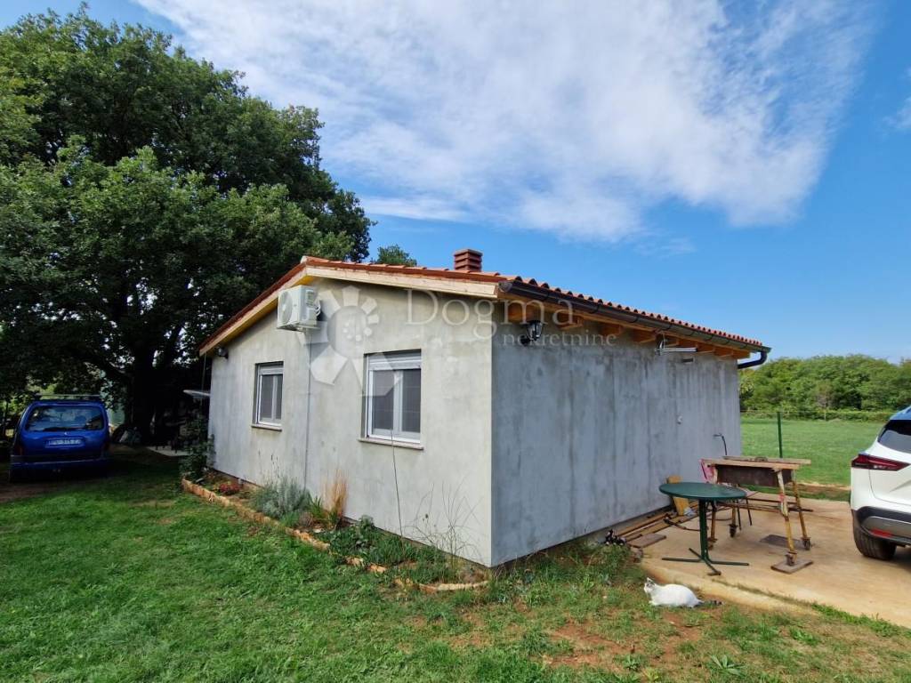 On the outskirts of Ližnjan, on a spacious plot of land, a residential building with proper paperwork has been built. Construction work was completed in mid-2024. The building has excellent thermal insulation and the facade will soon be completed. The building consists of: - kitchen - dining room - bedroom - bathroom with toilet - summer kitchen A terrace for enjoying under an old oak tree has also been constructed next to the building. An application for electricity has been submitted and the connection is awaited. Preparations and installations are complete.