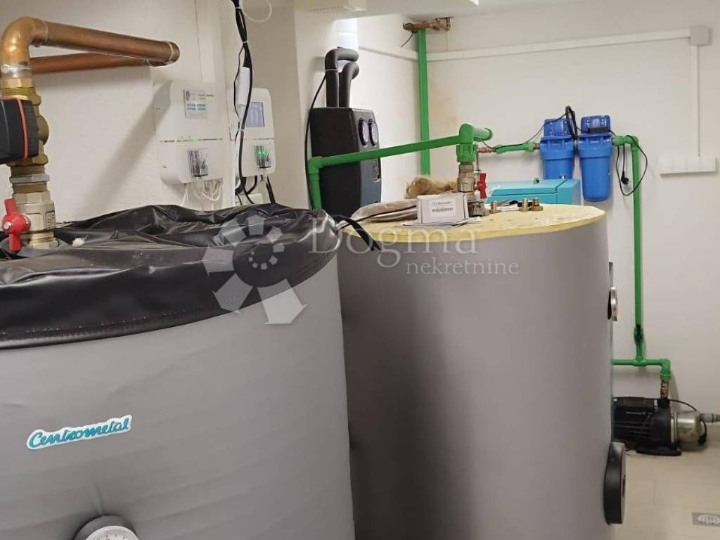 - the engine room contains a new pellet central heating of 36kw Peltec Centrometal, with a 500l storage tank (3kw heater), and a 300l consumption water tank paired with solar hot-pipe collectors (the heating is controlled via the app)