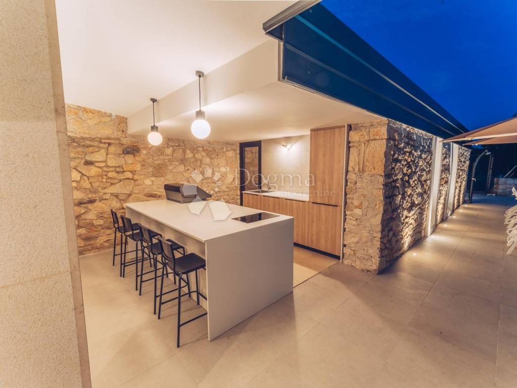 The exterior of the house is as impressive as its interior. A spacious garden with two hundred-year-old olive trees, a two-hundred-year-old mulberry and other Mediterranean plants provides a peaceful environment for relaxing and enjoying nature. The stone terrace with barbecue and outdoor dining area is perfect for summer parties and family dinners outdoors. In addition to the pool in the yard, which provides refreshment during hot summer days, you also have a relax zone with a sauna and a shower at your disposal.