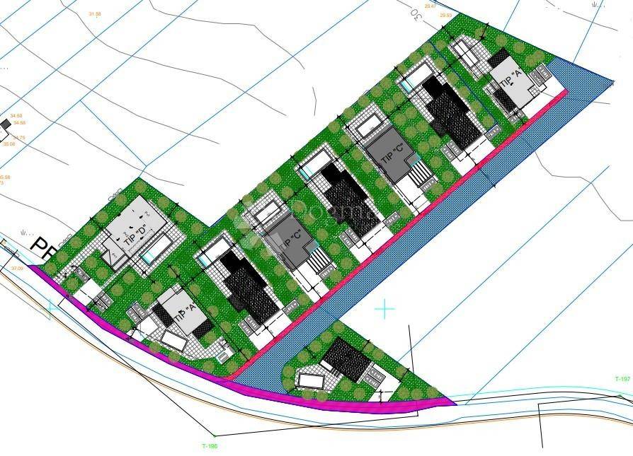 Odličan kompleks građevinskih parcela veličine od 663 m do 850 m, lijepog oblika s idejnim rešenjem za kompleks kuća za odmor s bazenom različitih stilova.