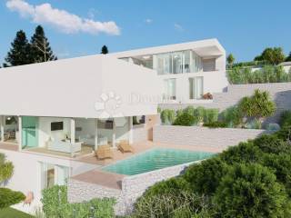 Na prodaju je izuzetno atraktivno građevinsko zemljište površine 1043 m2, smješteno na predivnoj i izrazito mirnoj lokaciji s otvorenim pogledom na more. Zemljište je pravokutnog oblika na kaskadnom terenu, što omogućava neometan pogled iz budućih vila na obližnji zaljev.