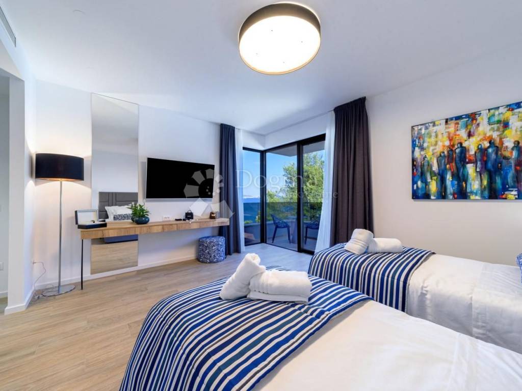 The villa is located in a complex consisting of 3 luxury villas with a total of 12 bedrooms and two outdoor and one indoor swimming pool with a beautiful panoramic view of the sea. Each villa has 4 bedrooms for 8 people.