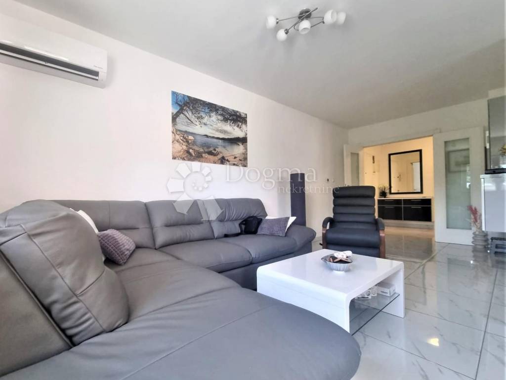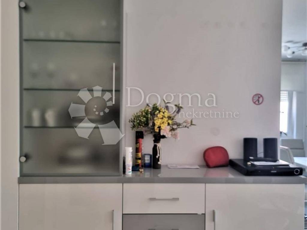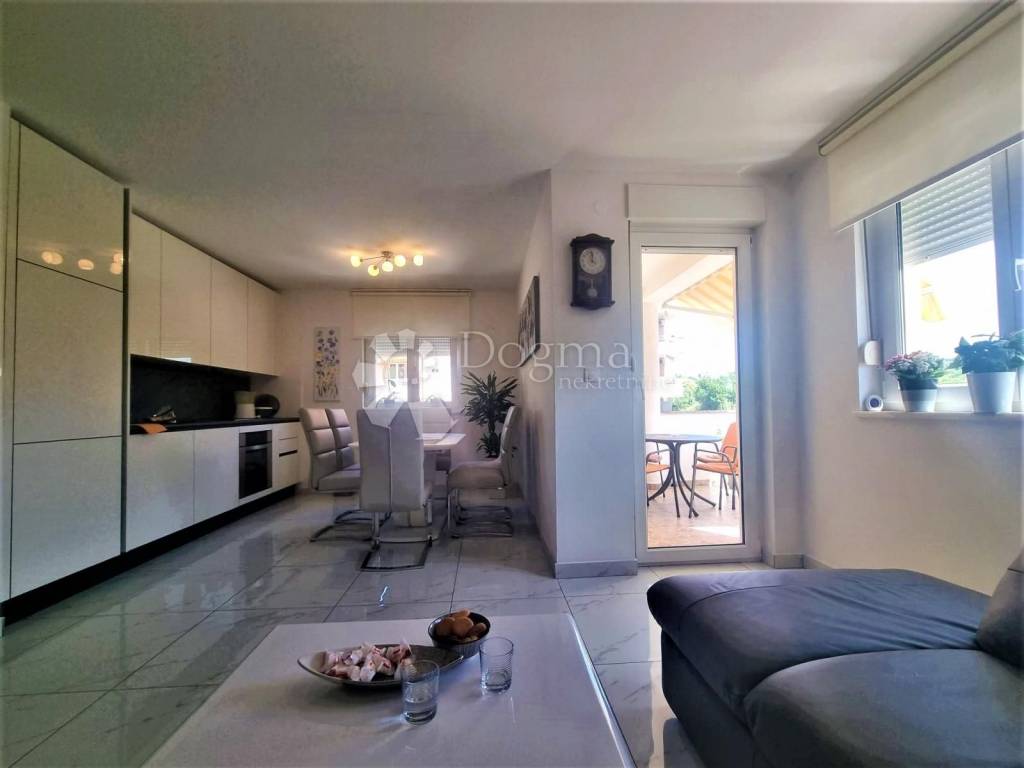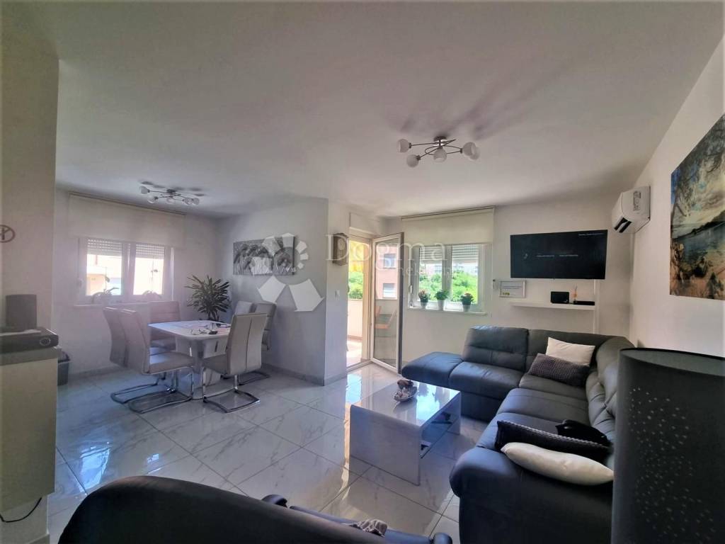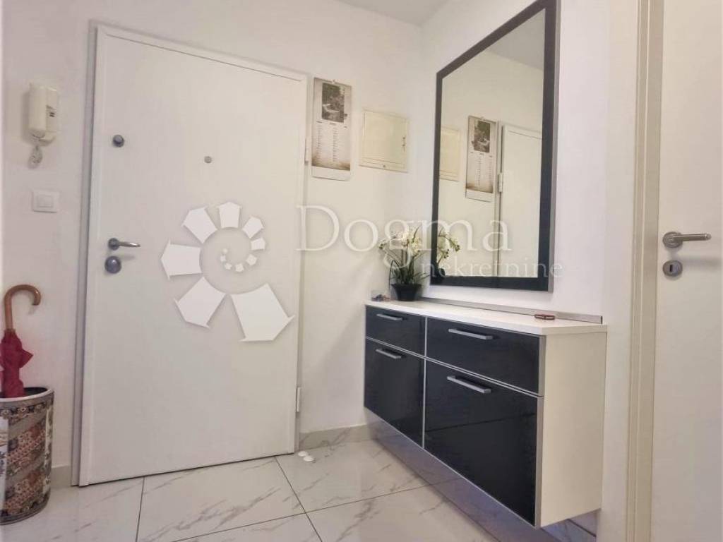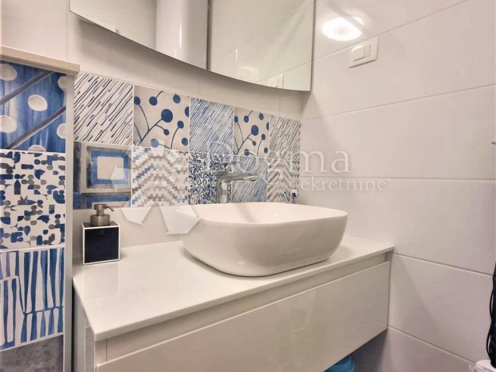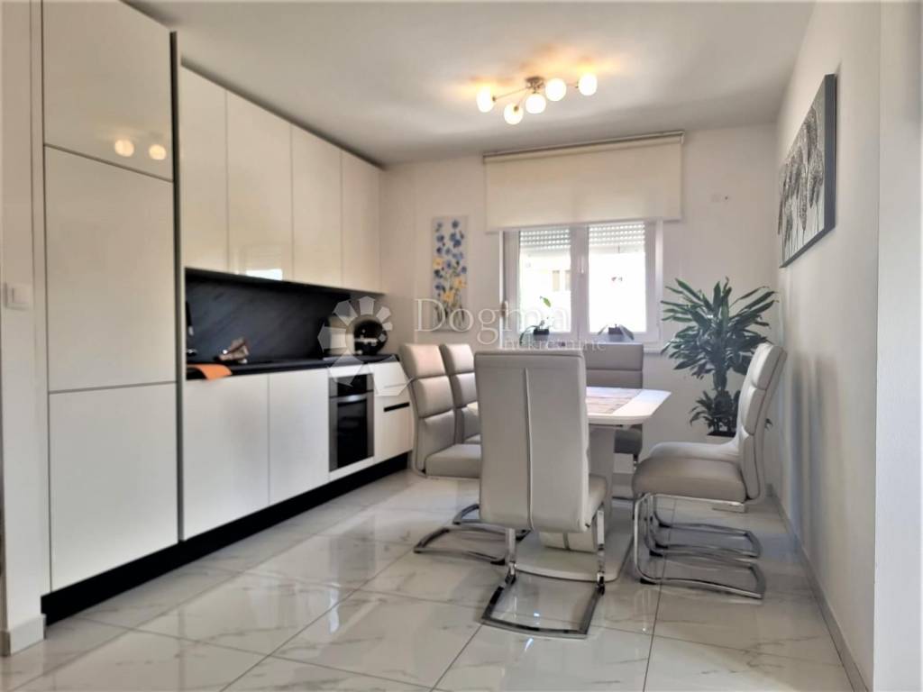 Upon entering the apartment, you can see that a lot of effort and money has been invested in it, from the ceramics itself to every detail in the interior decoration. The hallway is spacious and connects the kitchen and dining area, bedrooms and bathroom. Further down, on the left, there is a bathroom with a shower, a sink, a toilet bowl, a water heater and a washing machine. The bathroom is also luxuriously and modernly decorated. Further on, the corridor leads to two bedrooms, one next to the other. Each bedroom consists of a double bed with accompanying bedside tables and wardrobes.