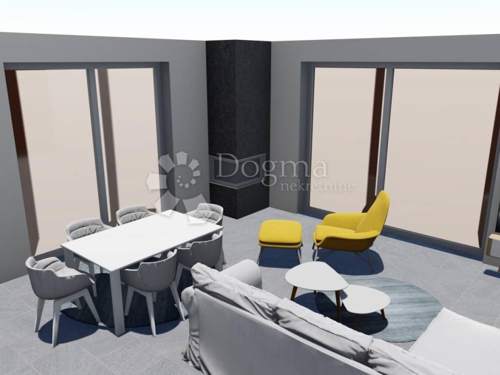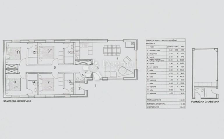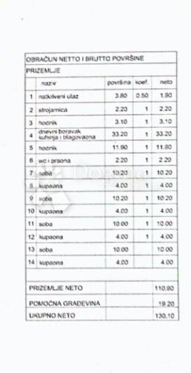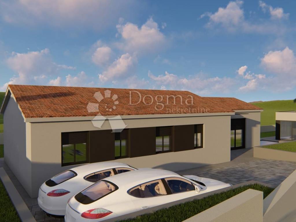 Prodaje se građevinsko zemljište sa građevinskom dozvolom za montažnu kuću sa bazenom. Površina zemljišta iznosi 891 m2, a neto površina kuće je 110.90 m2 te sa pomoćnim objektom (ljetna kuhinja) iznosi 130 m2.
