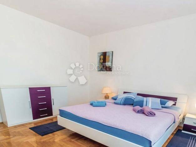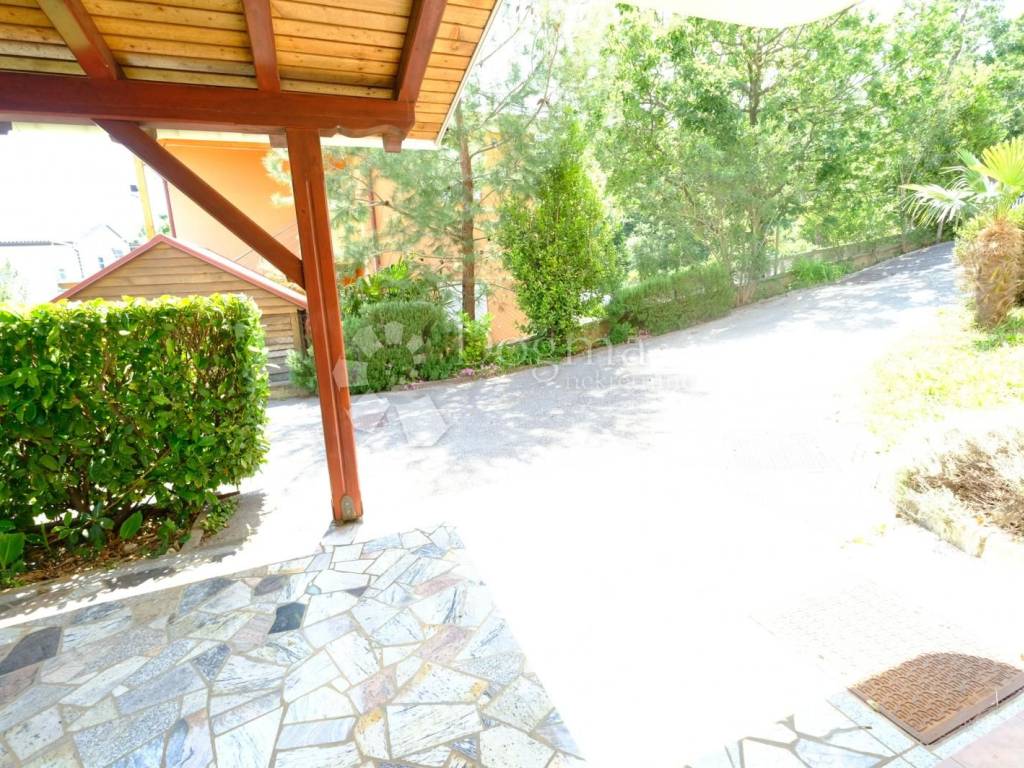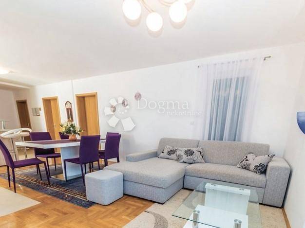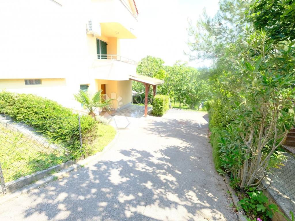 The apartment is located in a quiet location on the ground floor of a small building and consists of three bedrooms, a open space area of the kitchen, dining room and living room, bathroom and storage room. It has two covered terraces, a landscaped garden of 138 m2, and two parking spaces. The apartment is fully furnished and equipped.