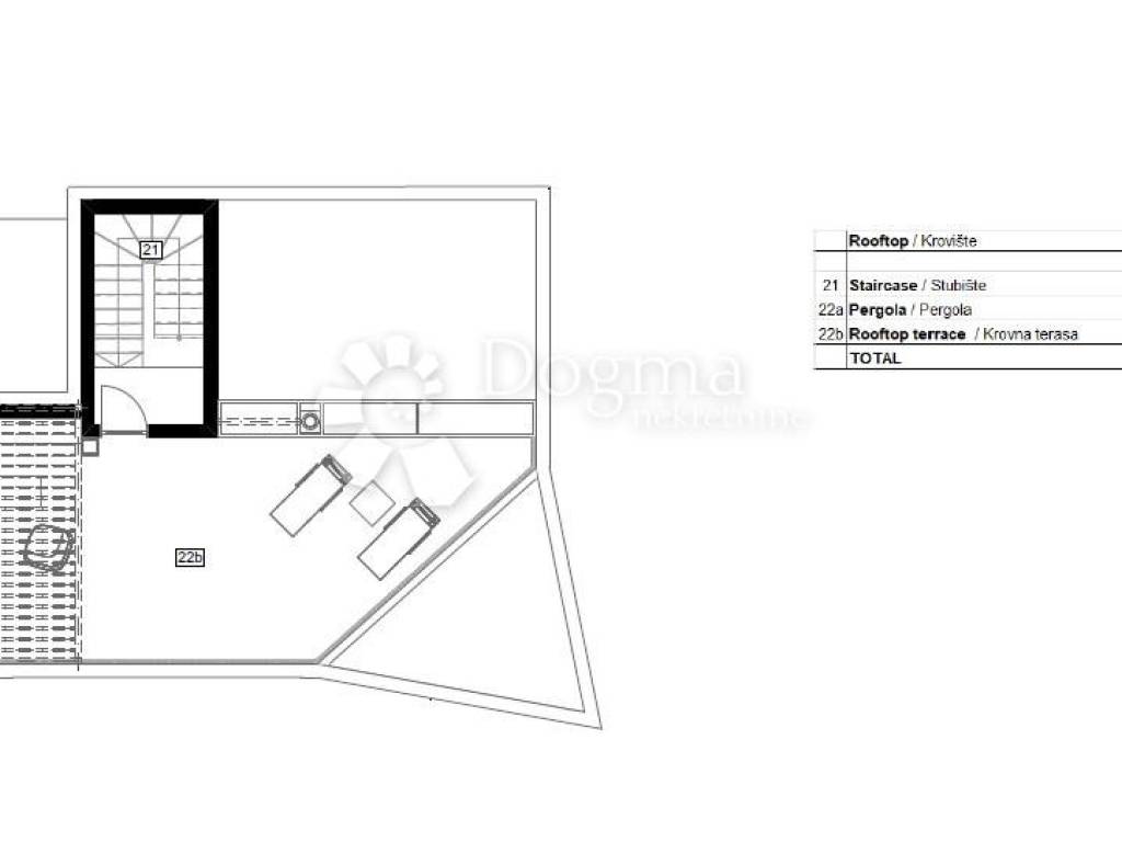 3. The entire flat roof is designed as a sun deck, with a partially covered pergola, which allows you to enjoy a panoramic view of the sea and the surrounding landscape.