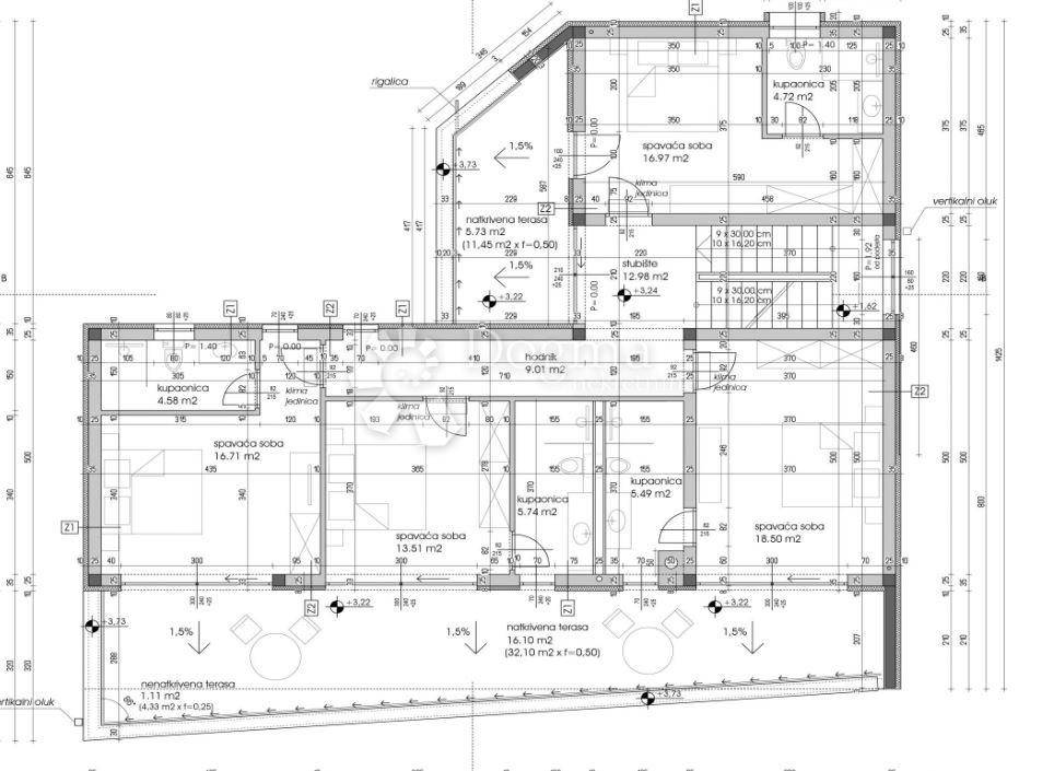 The ground floor of the villa consists of an imposing living room, kitchen and dining room, which together occupy as much as 55 m2. This open space provides an extraordinary setting for family gatherings and socializing with friends. In addition, on the ground floor there is also a wellness corner intended for relaxation and enjoyment, ideal for moments when you want to treat yourself and feel complete relaxation. Also, the ground floor includes a technical room, a laundry room and a guest toilet, providing practicality and functionality in everyday life.