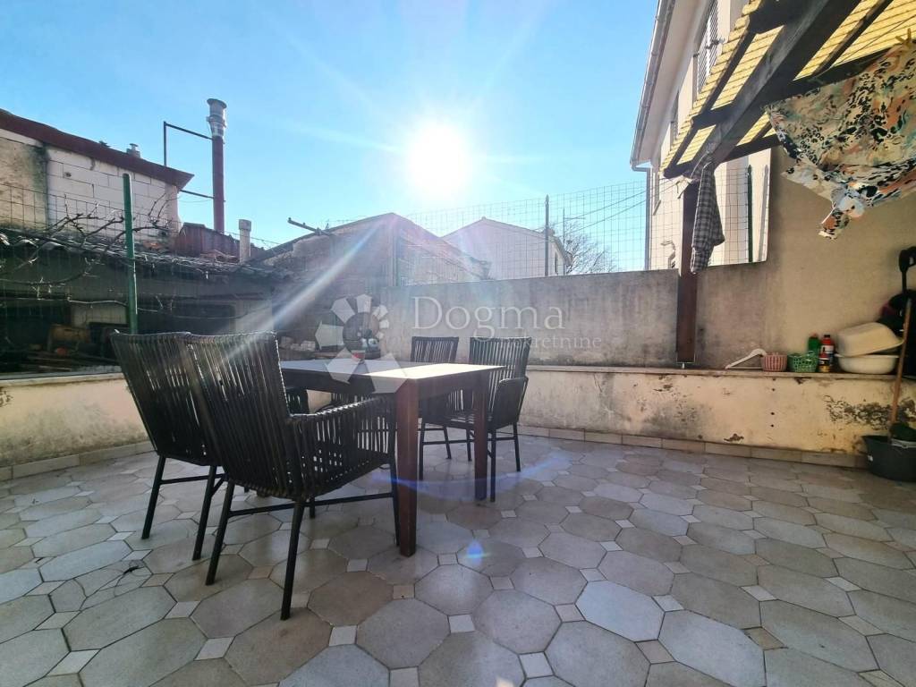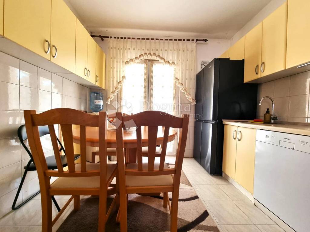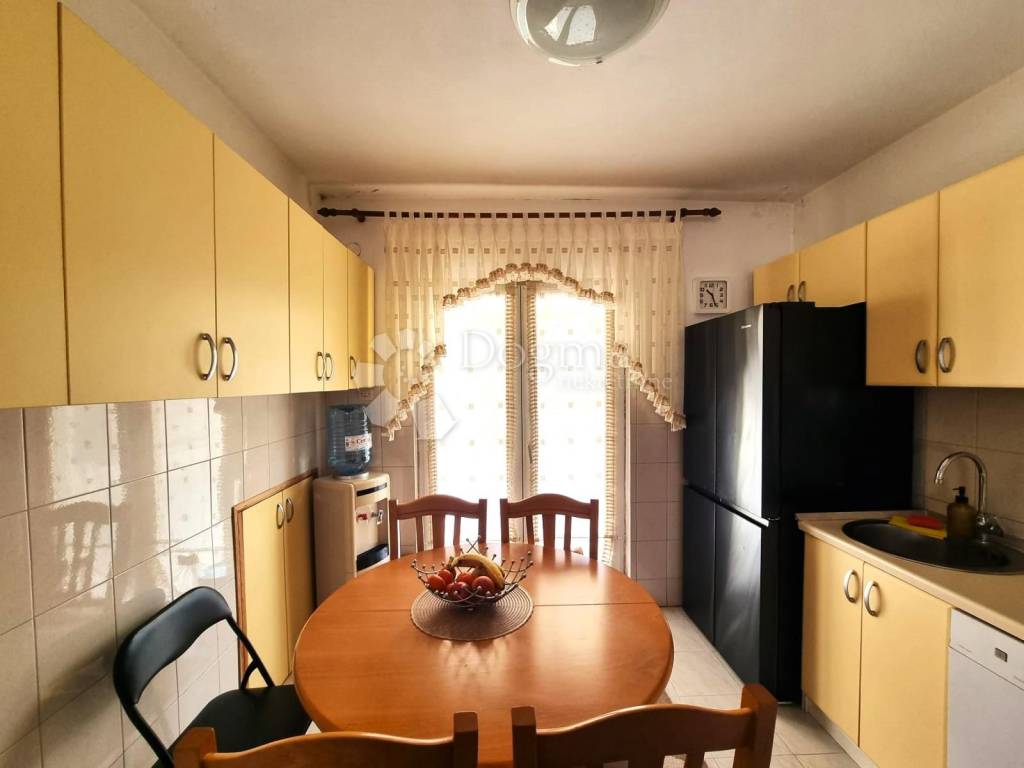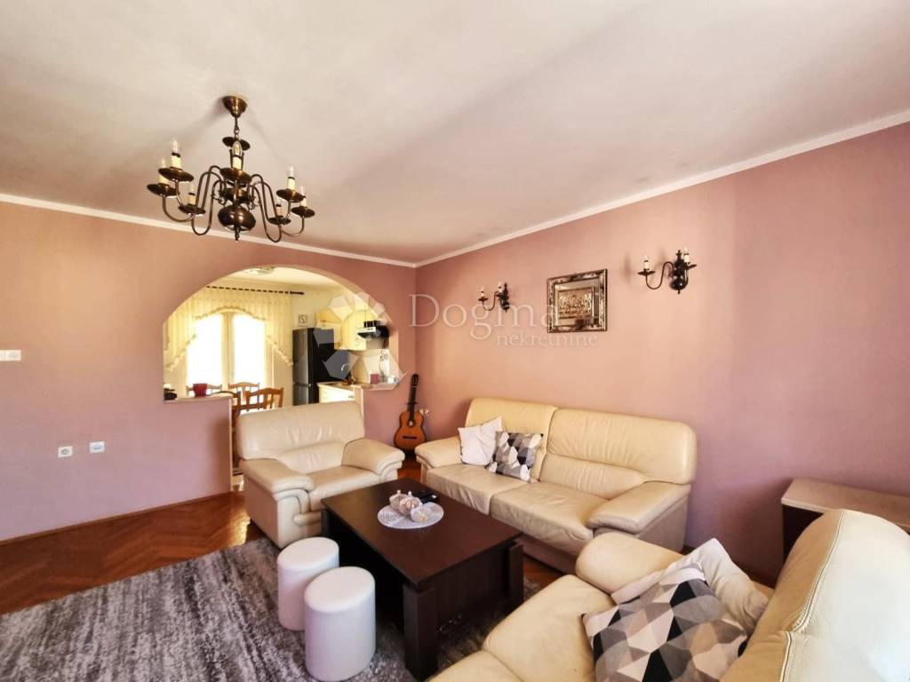 The upper floor of the house is essentially a two-story apartment with access to a large terrace in the lower part. The lower floor consists of an entrance area, a large living room, a kitchen with a dining room and an exit to a large and spacious terrace. The upper floor is accessed by a neat, internal staircase, where there are three bedrooms and one large bathroom. From the top floor there is also a view of the sea.