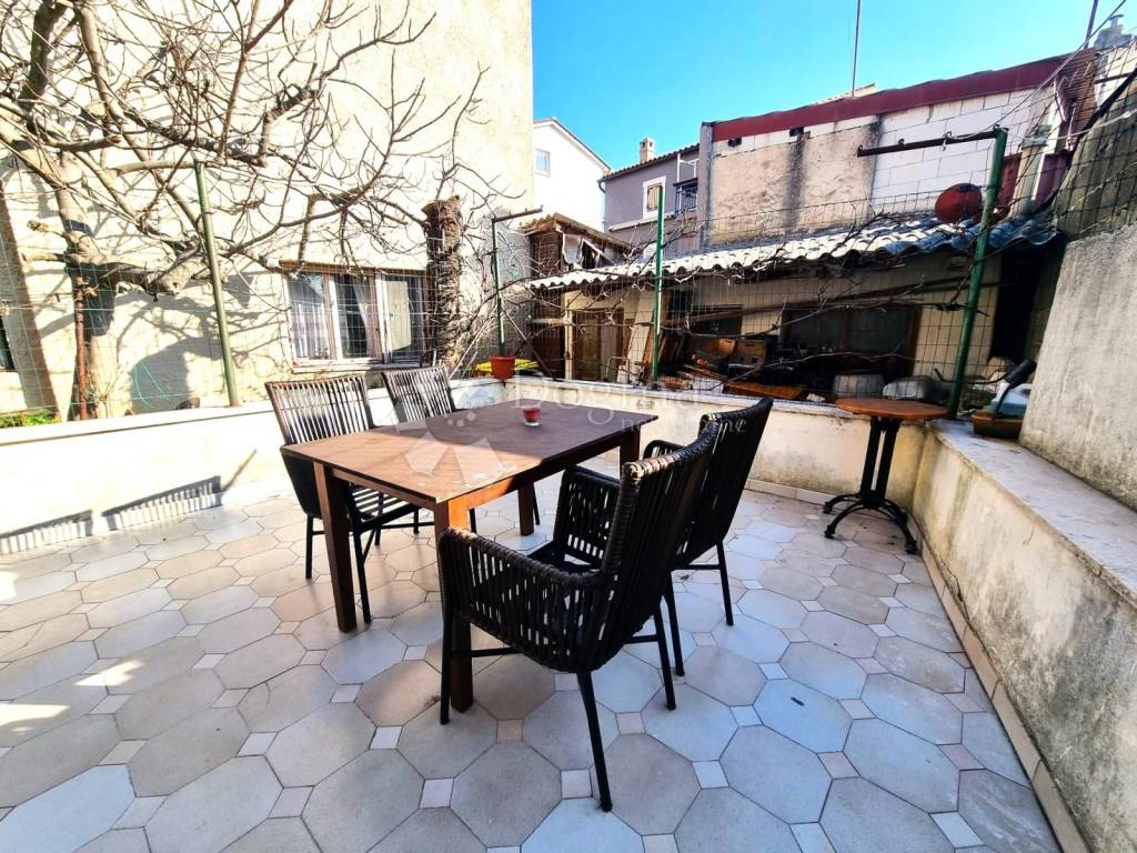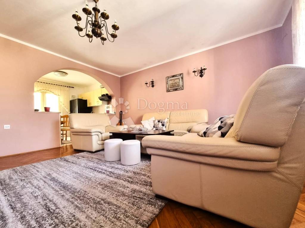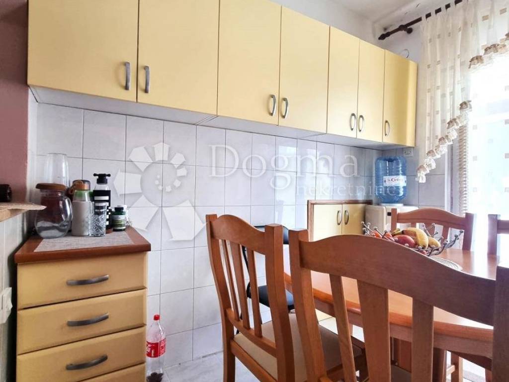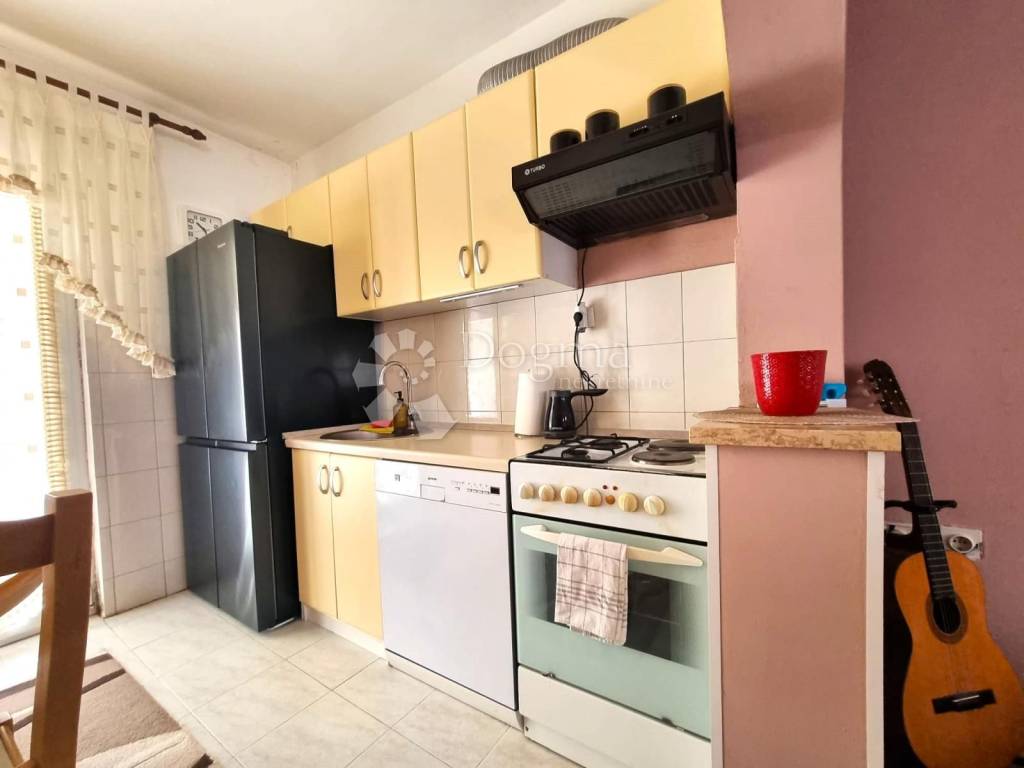 The upper floor of the house is essentially a two-story apartment with access to a large terrace in the lower part. The lower floor consists of an entrance area, a large living room, a kitchen with a dining room and an exit to a large and spacious terrace. The upper floor is accessed by a neat, internal staircase, where there are three bedrooms and one large bathroom. From the top floor there is also a view of the sea.
