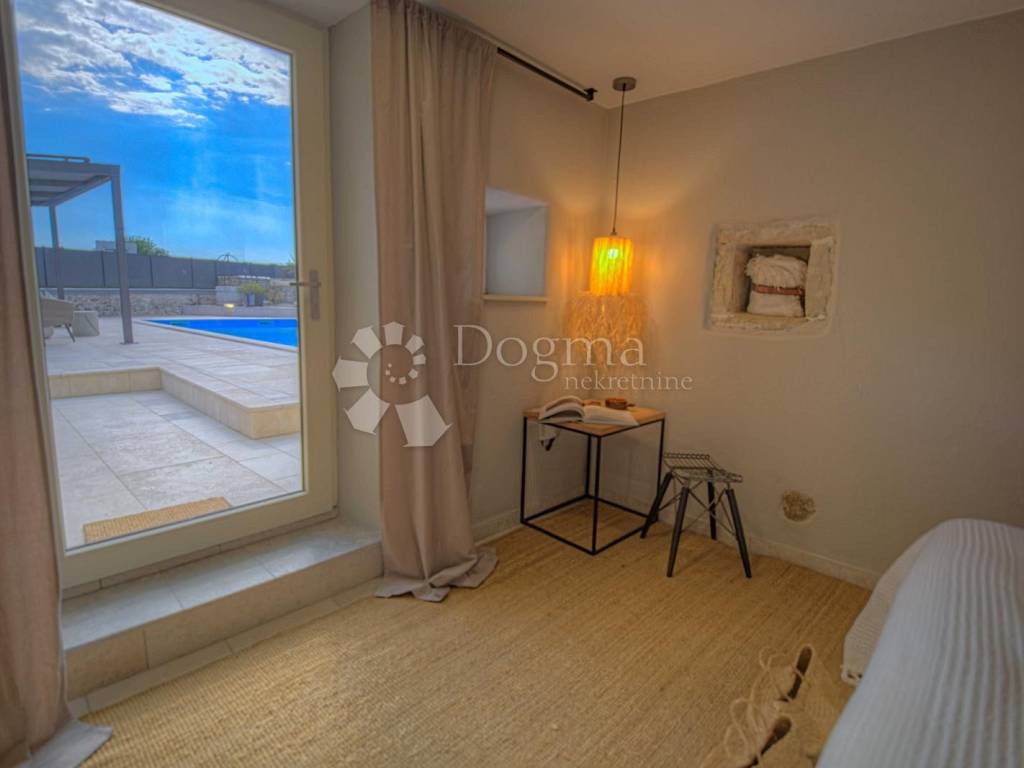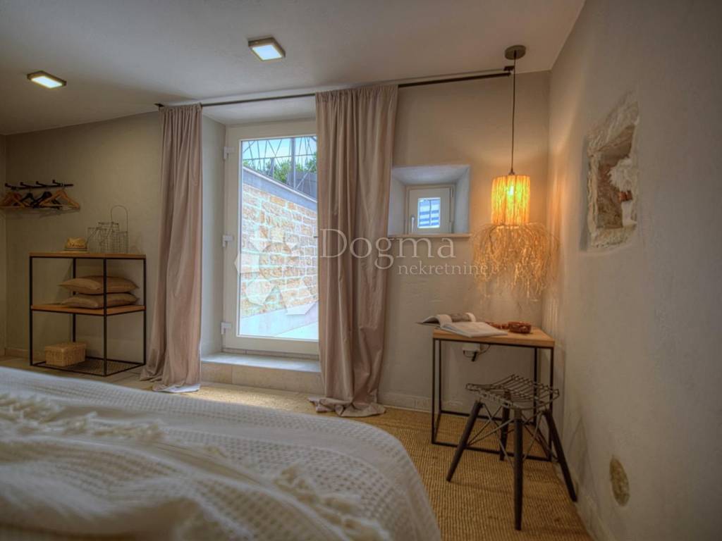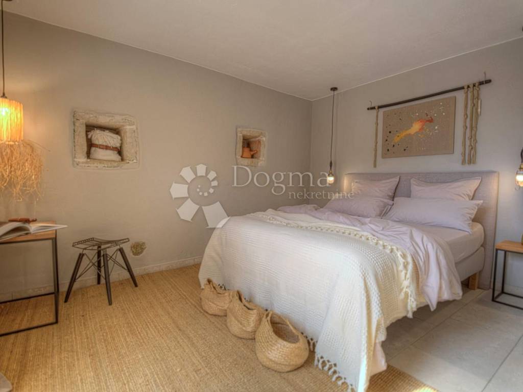 During the restoration, rustic high-quality materials such as concrete, limestone, large paved stone and light-colored wood were used to adapt and expand the rooms in line with modern ideas. The house has 120 m2 and consists of a living room with open kitchen and dining room, and a bedroom with bathroom and exit to the pool on the ground floor.