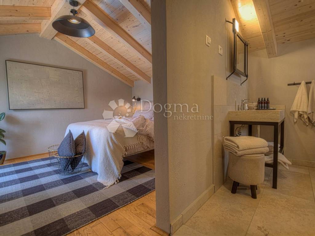 Next to the house is a fully equipped summer kitchen for socializing with family and friends. As far as heating / cooling is concerned, air conditioners have been installed, while all bathrooms have underfloor heating. The combination of stone and wood with warm colors makes this interior very comfortable and interesting.