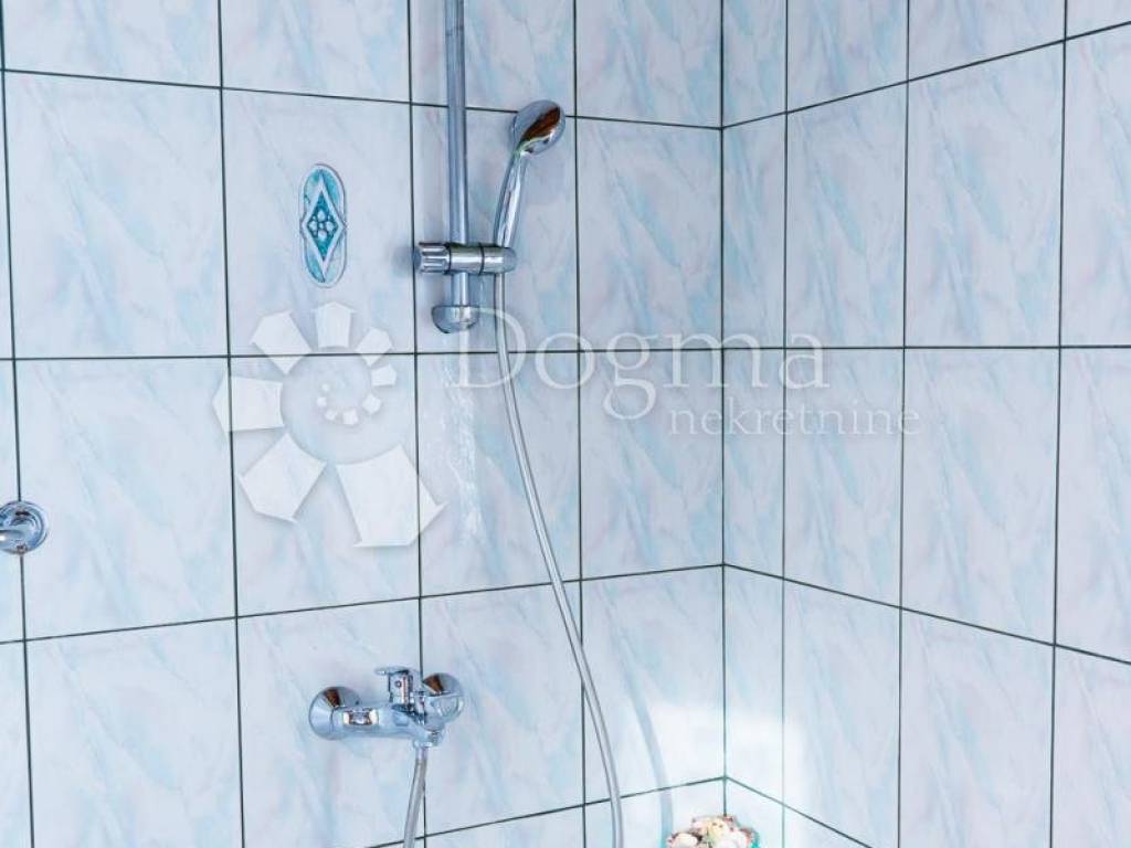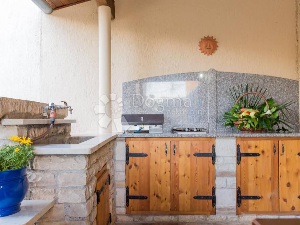 In the very center of Šišan, there is a house on a plot of 346 m2. It consists of a hallway from which you enter the kitchen on the left, the living room on the right, and a bathroom under the stairs.