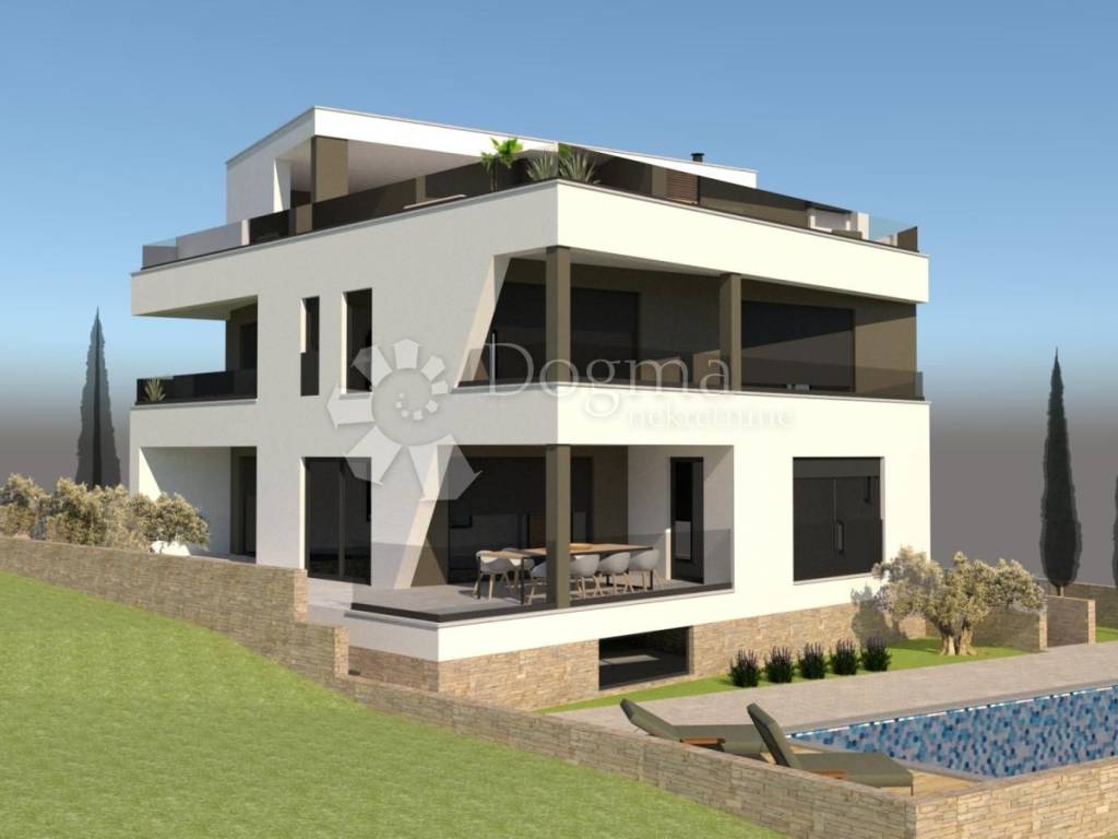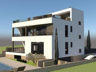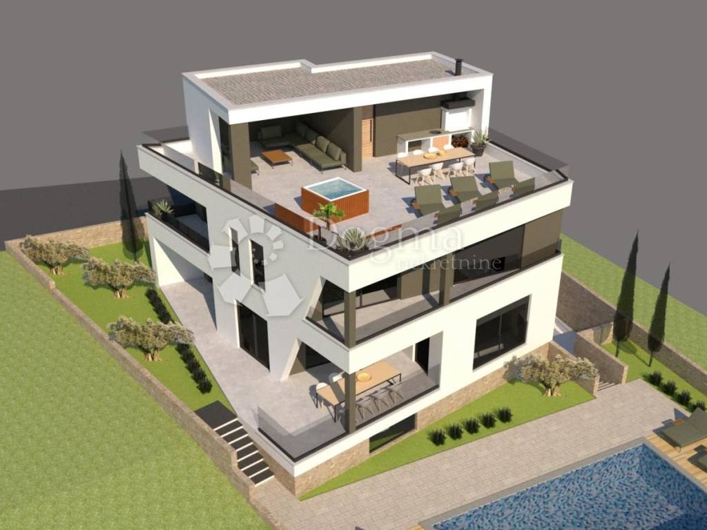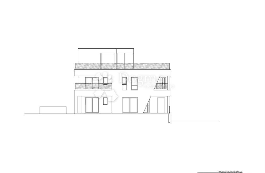 It is in this place that this luxury villa with an unfinished swimming pool is located. The house has a panoramic view from all floors of the Medulin Bay. New building with attractive architecture, glass surfaces that let a large amount of light into the house. The house consists of 4 floors (basement, ground floor, first and second floor).