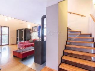 The house consists of two apartments, ground floor, and adjoining part with a garage and utility rooms. Apartment on the first floor consists of two bedrooms, living room, kitchen and one bathroom and one toilet (totally 80 sq. meters). Apartment on the second floor consists of three bedrooms, living room, kitchen and one bathroom and one toilet (totally 100 sq. meters). Ground floor consist of 3 rooms with 2,3 meters ceiling and windows with garden view (totally 50 sq. meters, not furnished yet). All the furniture in apartments was carefully selected and special attention was paid to details.
