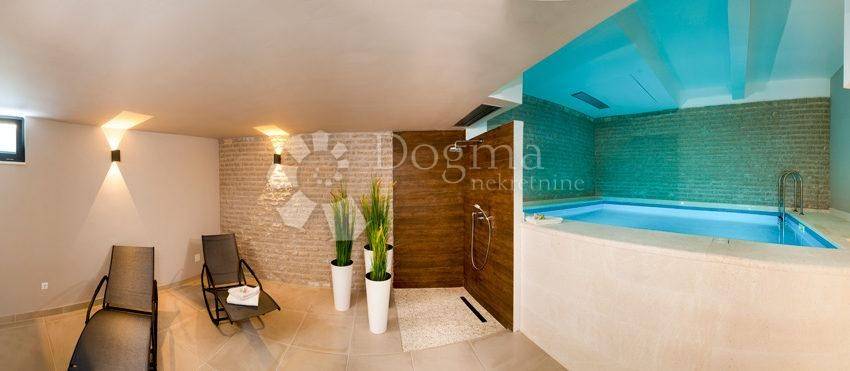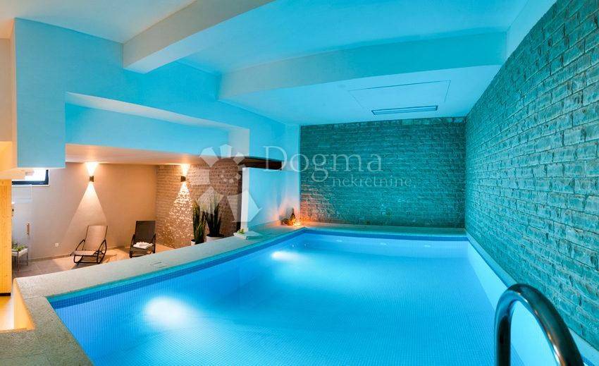 - Private wellness area: sauna, gym, game room (billiards), and a 15 m indoor swimming pool