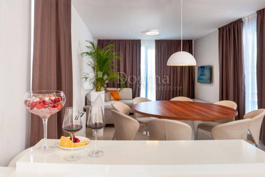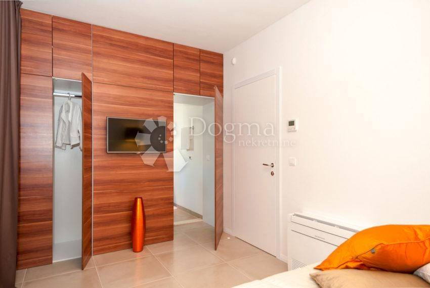 This elegantly furnished holiday villa is located on the highly sought-after Čiovo Peninsula, just steps away from a stunning pebble beach positioned second row from the sea.