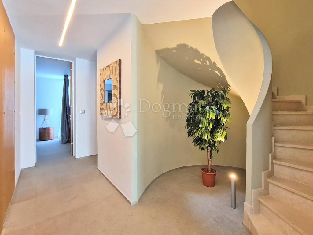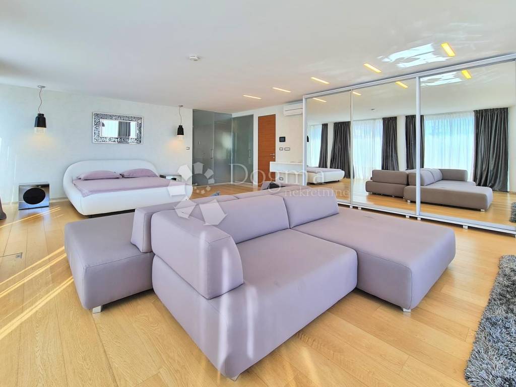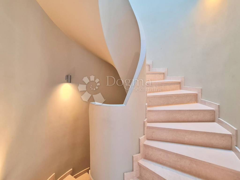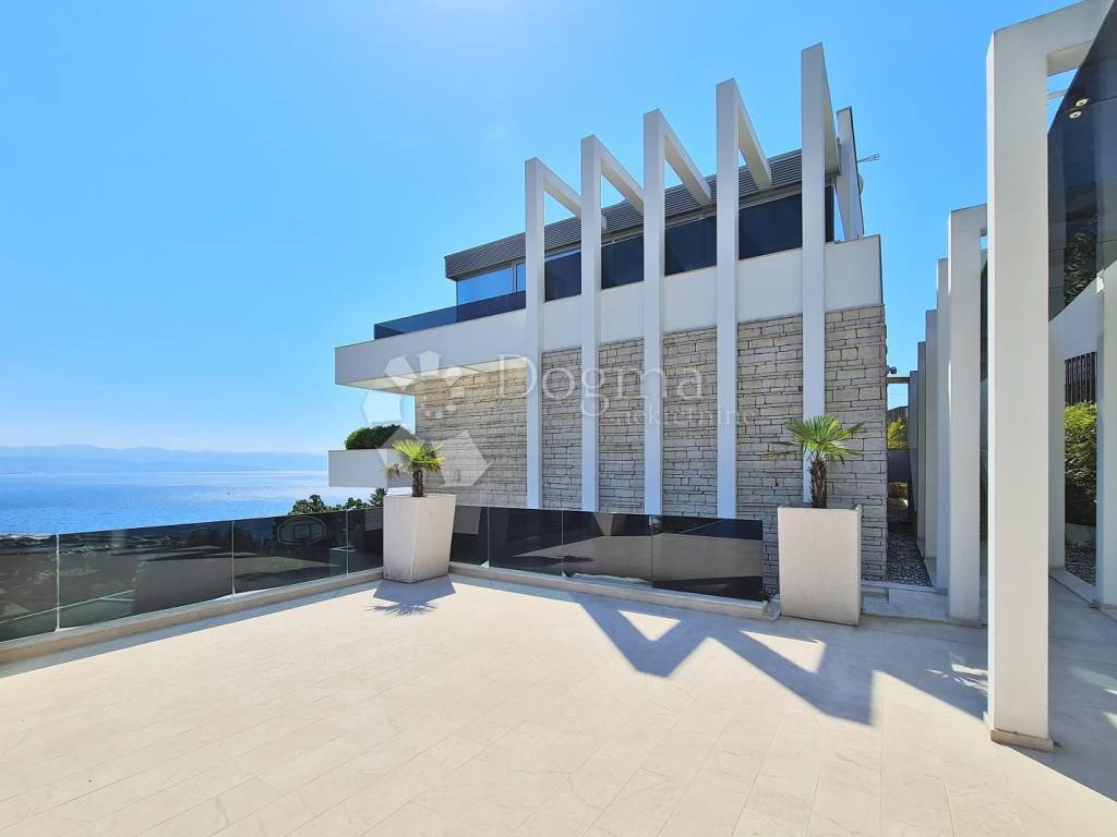 The villa boasts a modern, well-equipped interior, offering an open view of the sea and Kvarner. One of the unique features of this property is the part of the exterior designed in a Japanese style with black marble.