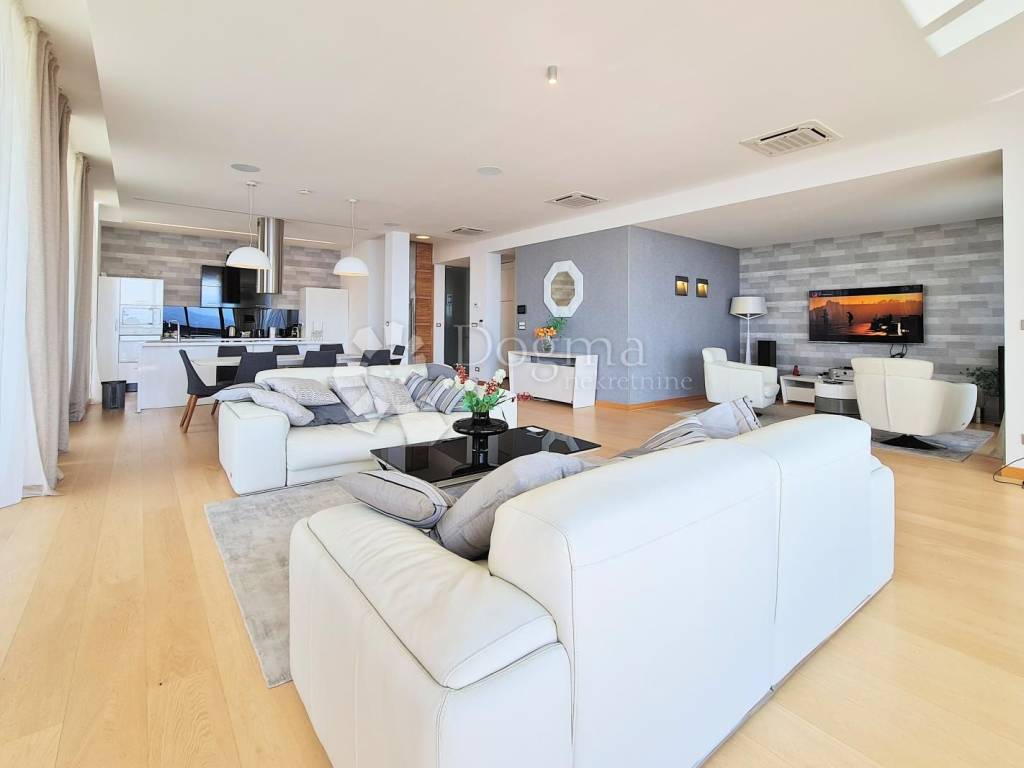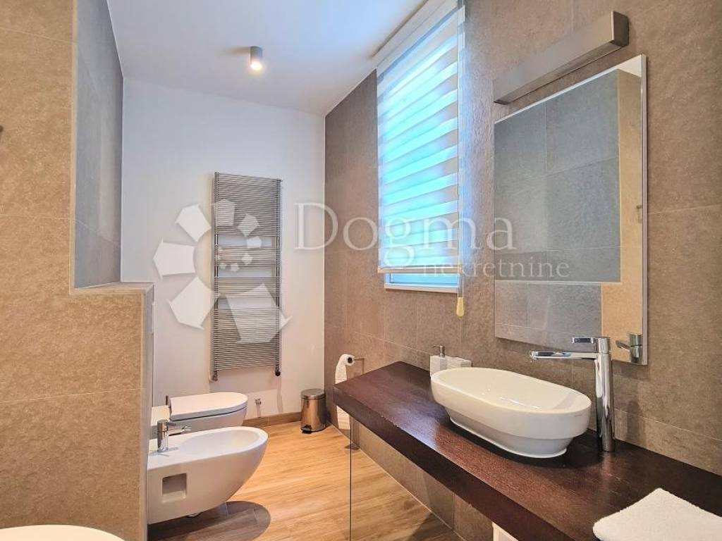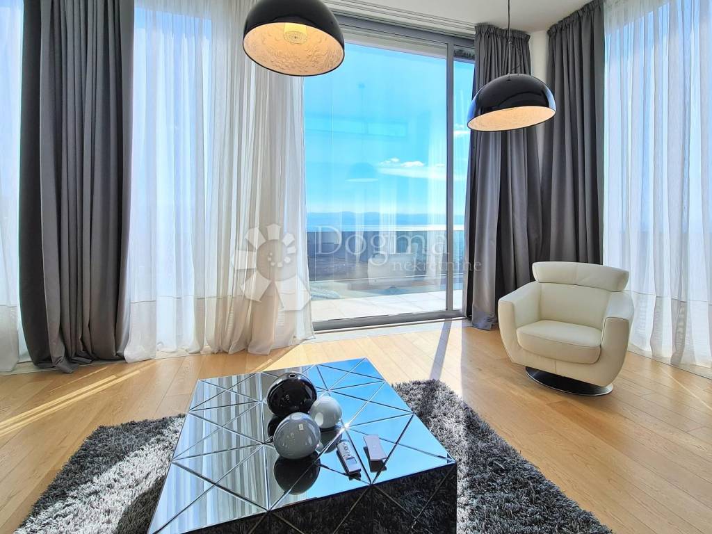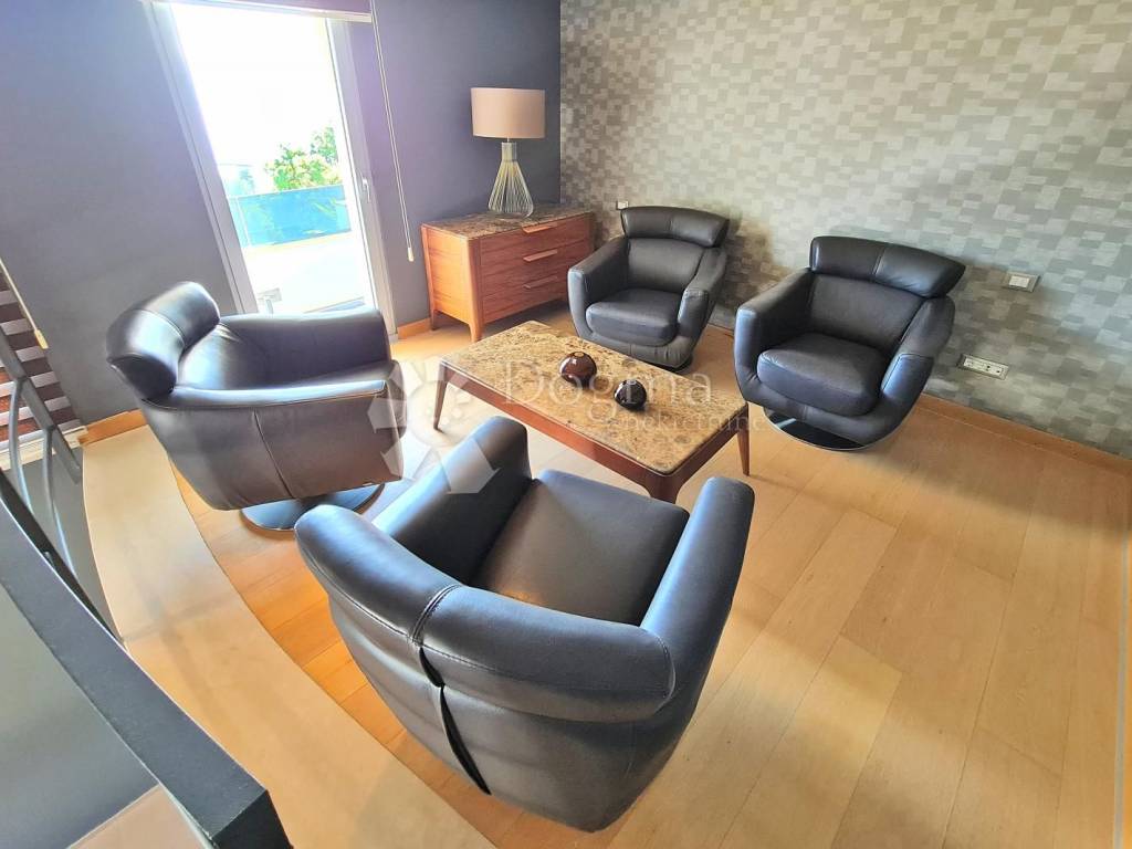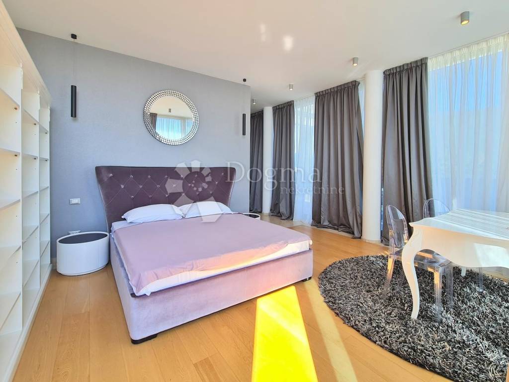 The villa boasts a modern, well-equipped interior, offering an open view of the sea and Kvarner. One of the unique features of this property is the part of the exterior designed in a Japanese style with black marble.