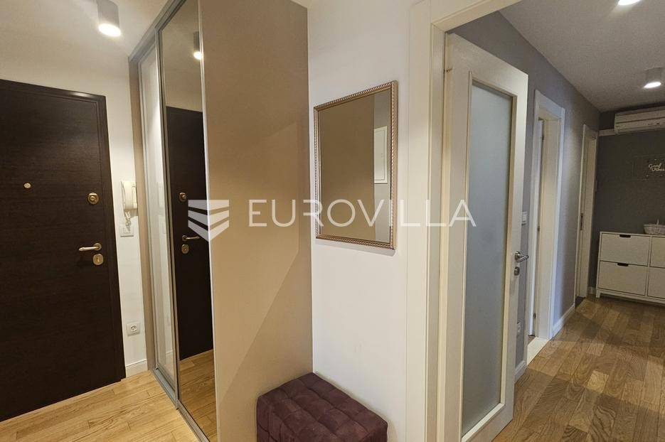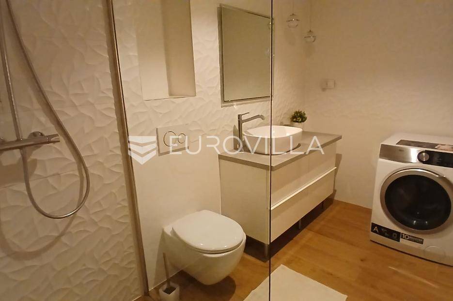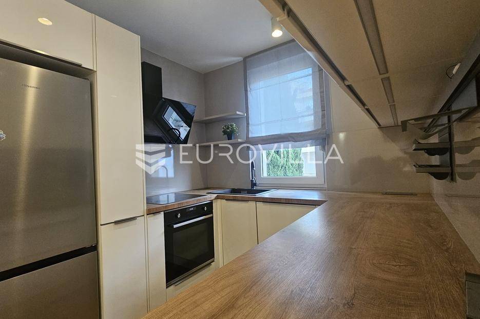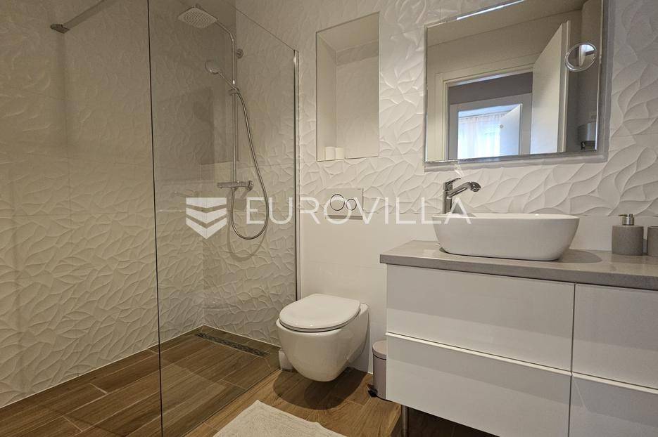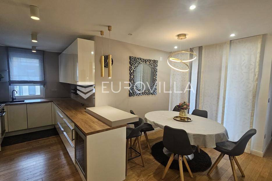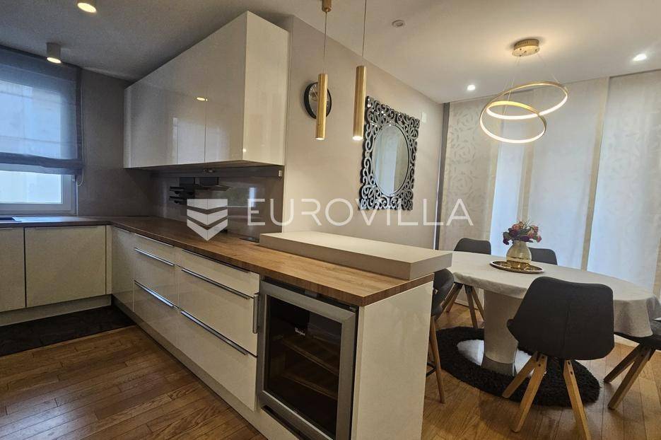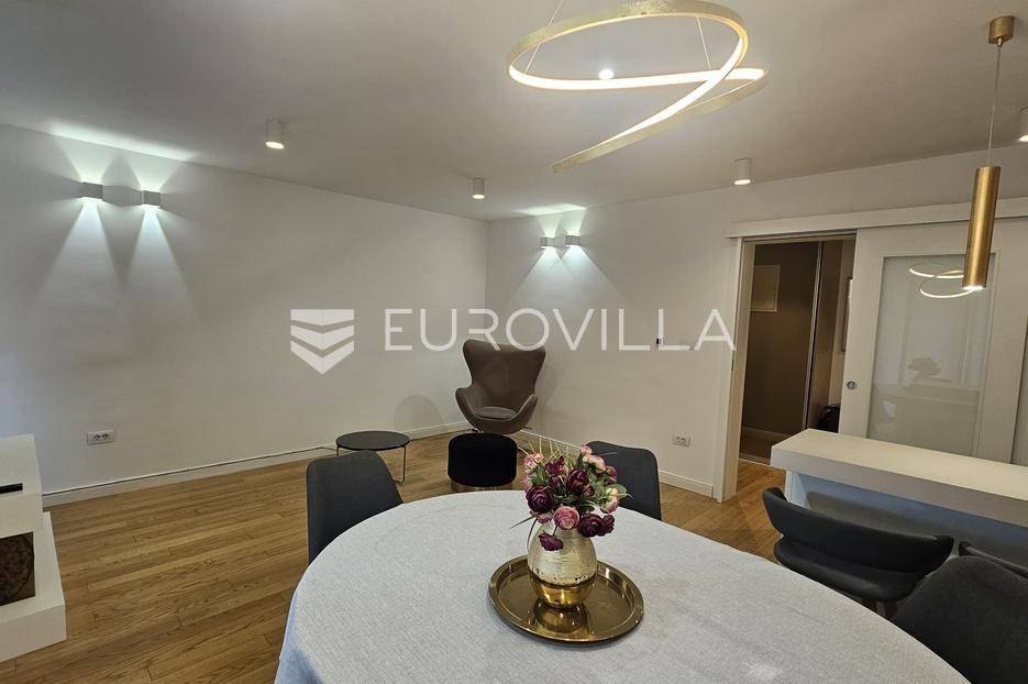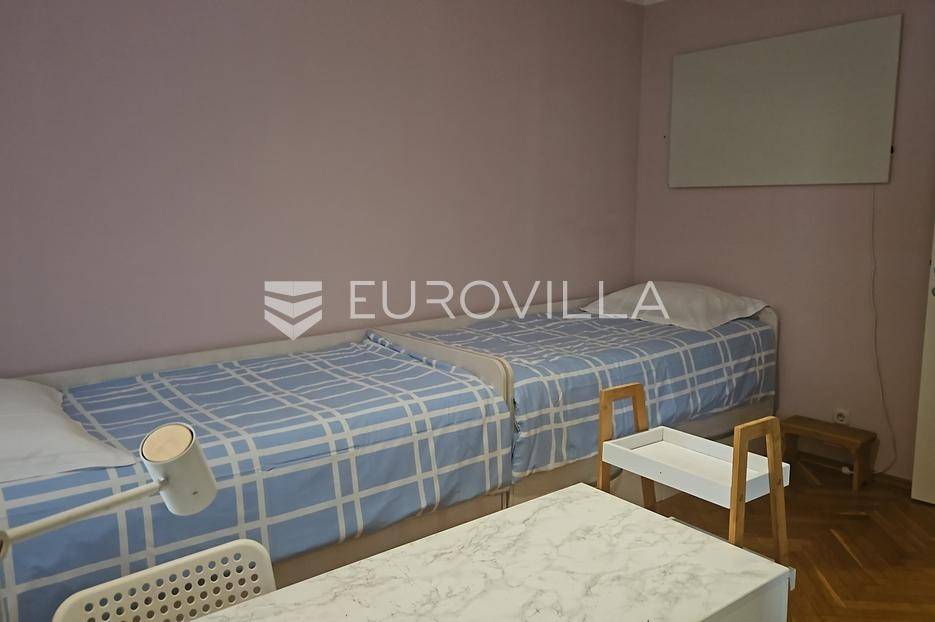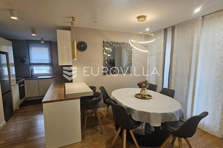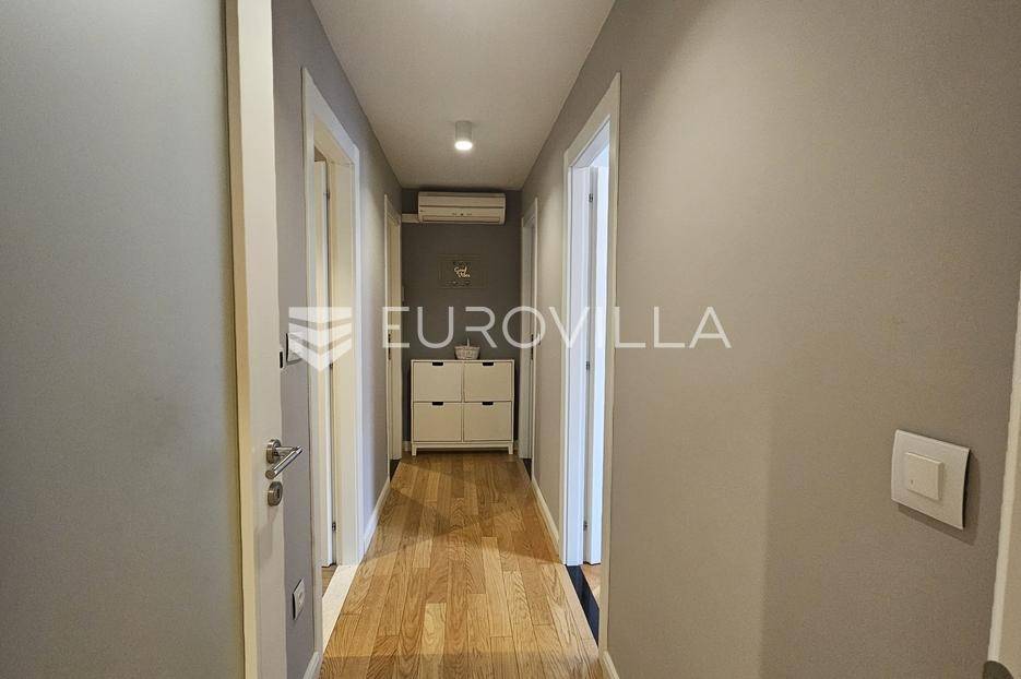Split, Pazdigrad, moderno opremljen trosoban stan s prostranom terasom i dvije garaže - dostupan za dugoročan najam.Stan se sastoji od kuhinje s blagovaonicom, dnevnog boravka, tri spavaće sobe, dvije moderne kupaonice, hodnika, predsoblja, lođe na jugu i velike natkrivene terase na sjeveroistoku. Uz to, stanu pripadaju i dvije odvojene garaže s rolo vratima od kojih svaka ima 17,50 m2.Smješten je na prvom katu održavane stambene zgrade, a ima odličnu orijentaciju (sjever, istok, jug) koja osigurava obilje prirodnog svjetla tijekom cijelog dana.Nekretnina je potpuno opremljena uključujući brojne aparate poput: kombinirane perilice rublja sa sušilicom, perilice suđa, televizije, pećnice, hladnjaka, odvojenog hladnjaka za vino i slične. Kauč koji nedostaje na fotografijama je trenutno u procesu zamjene s novim modelom.Stan ima dva klima uređaja, podno grijanje u dnevnom boravku i manjoj kupaonici te tri ploče za grijanje koje se nalaze u spavaćim sobama.Lokacija je izuzetna zbog udaljenosti od mora (koja iznosi samo 385 m) i raznih sportskih sadržaja, škole, vrtića, autobusne stanice, šetnice Žnjan, trgovina, restorana, ali i svih važnih usluga za ugodnu svakodnevicu. Nedaleko su i veliki trgovački centri City Center One i Mall of Split.Za sva dodatna pitanja stojimo Vam na raspolaganju.