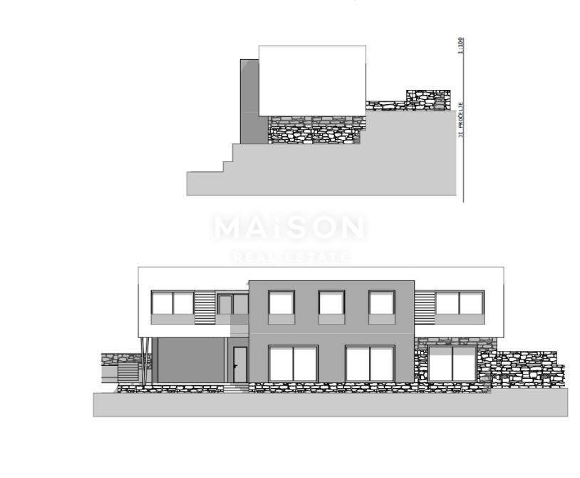 Prodaje se građevinsko zemljište 627m2 s kompletnim projektom i predanim zahtjevom za građevinsku dozvolu za izgradnju vile 267m2 s bazenom na atraktivnoj lokaciji i pogledom na more u Crikvenici.