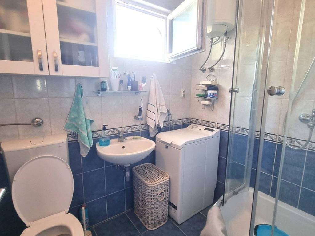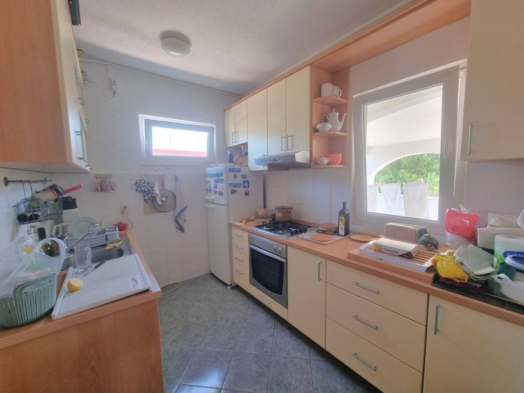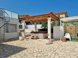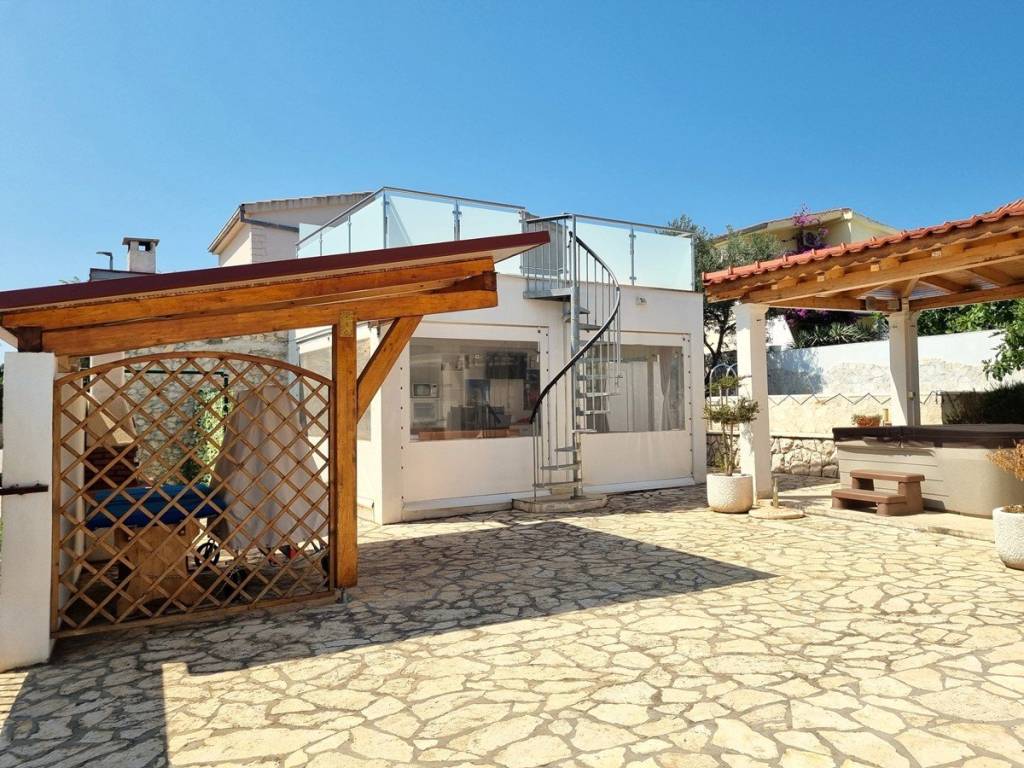 In a quiet village near Rogoznica, this beautifully maintained house is located on a plot of 524 m², with a total gross area of 183.92 m². It consists of three floors: basement, ground floor and first floor.In the basement there is a room with a water pump, while on the ground floor there is an apartment (60.64 m2) with a living room, dining room, kitchen, three comfortable bedrooms and a bathroom. The living area opens onto a covered terrace, perfect for relaxing and dining outdoors.An external staircase leads to the first floor, where there is another fully equipped apartment (49.11 m2) with a living room, kitchen, two bedrooms, a bathroom and a large terrace (33.23 m2) that offers additional space for spending time in the fresh air.In the landscaped and fenced yard there are additional facilities that increase the value of this property - a traditional stone house with a fireplace (15.66 m²), which is currently used as a storage room. There is also a auxiliary facility with a summer kitchen, dining area and toilet. The flat walk-through roof of this facility serves as an additional terrace.For complete outdoor enjoyment, the yard also offers a swimming pool, jacuzzi, sunbathing area, barbecue and secured parking spaces.The house is being sold fully furnished and ready to move in, and thanks to its attractive location and rich amenities, it represents an excellent opportunity for both a quiet family life and for tourist rental.It is only 150 m from the sea, 11 km from Rogoznica, 25 km from the town of Trogir, and 30 km from Split airport.
