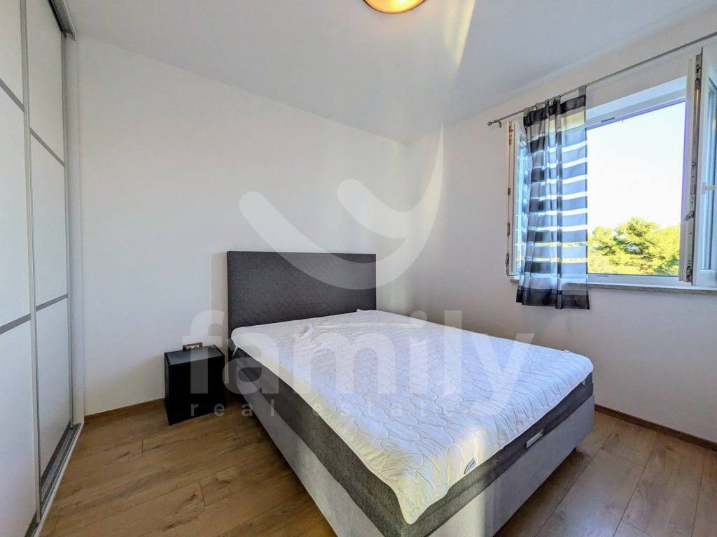Right in Veštar, in the immediate vicinity of Rovinj - in a quieter part, is this two-bedroom apartment of 60 m², located on the first floor of a residential building built in 2007, which is in excellent condition. The southwest-facing apartment offers a spacious and bright living room with access to a balcony, a Dankuchen well-equipped kitchen, two comfortable and spacious bedrooms and a comfortable bathroom. The apartment also comes with a 6 m2 basement storage room