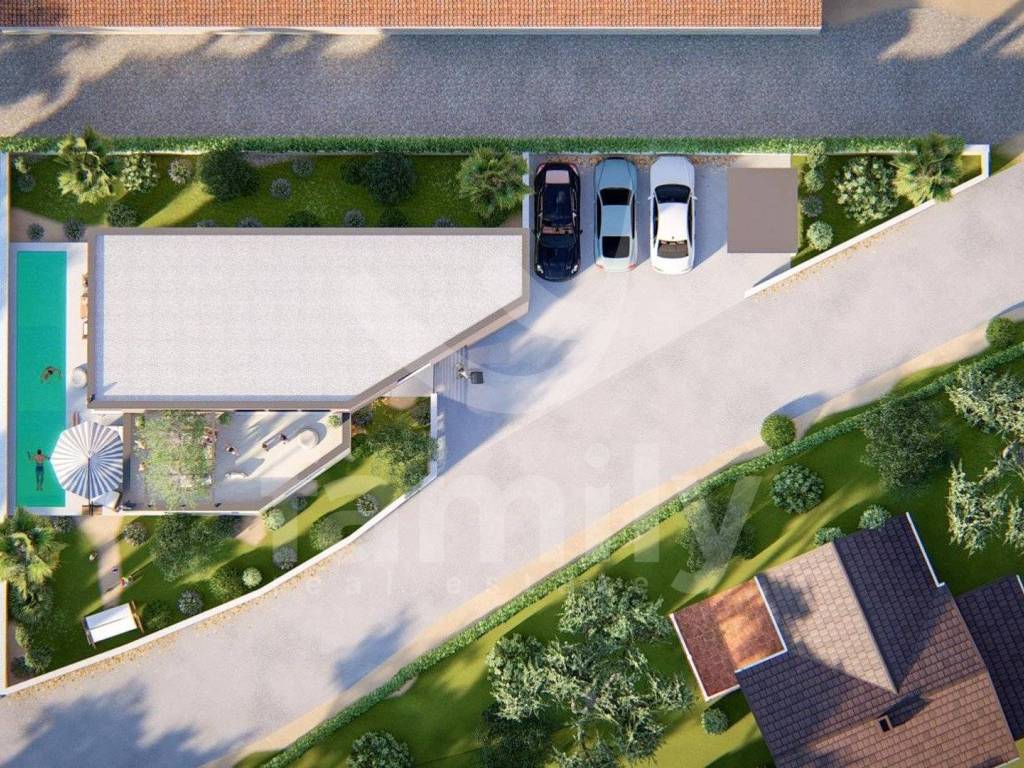 A house under construction with a total living area of 243 m2 is for sale in Šišan. It is located on a plot of land of 506 m2 as a detached building consisting of the ground floor and the first floor. It is of modern construction, top quality materials and PVC windows were used in the construction. The ground floor is open, where there is a kitchen with a dining room and a living room with access to the terrace and pool, two bedrooms and a bathroom.