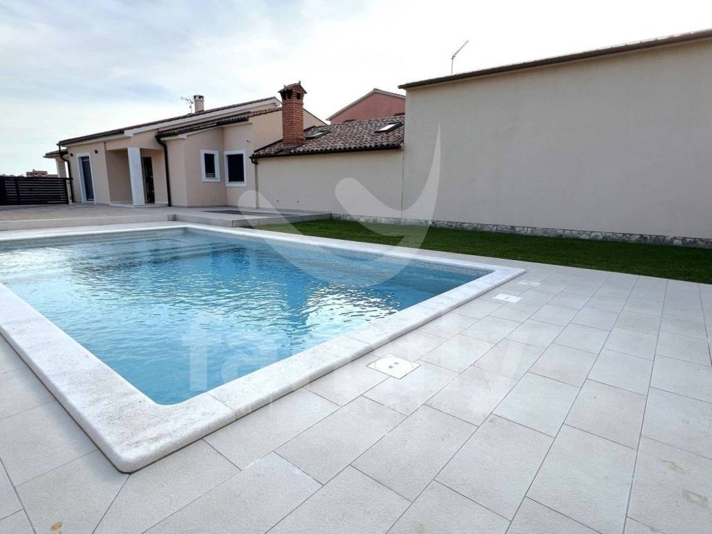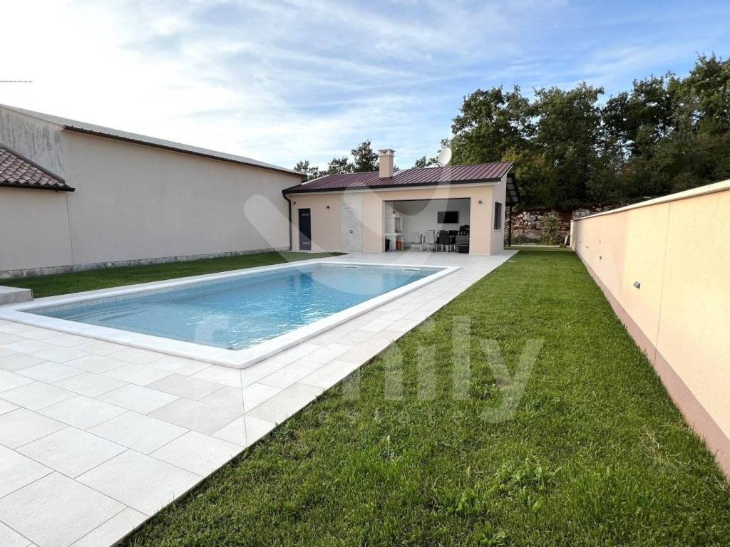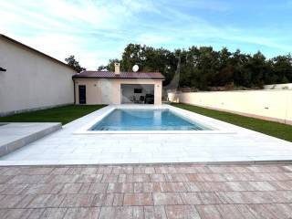 Right in one settlement within the municipality of Svetvinčenat, we offer this attractive one-story house with a swimming pool with a total area of 135 m2. The house consists of 3 spacious bedrooms, two of which have a private bathroom, a separate toilet, a living room with a modern wood-burning fireplace, and a kitchen with a dining table for 6 people. The living room opens onto a covered terrace, perfect for relaxing and enjoying summer evenings. By the pool there is also a summer kitchen with a dining table, TV, outdoor shower, and next to the summer kitchen there is a technical room with pool equipment.