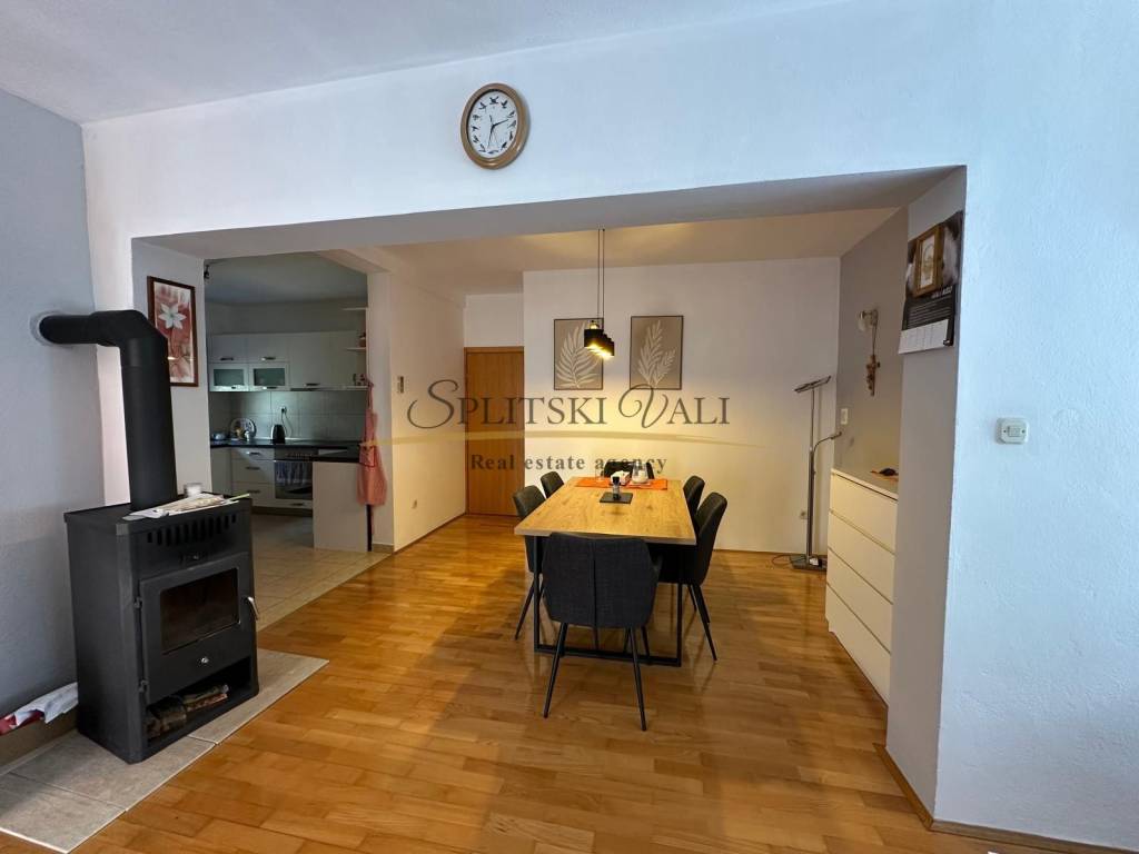 Prodaje se stan u visokom prizemlju zgrade u Okrugu Gornjem, ukupne površine 78,54m2 plus terasa12,56 m. Sastoji se od hodnika, kuhinje s blagovaonicom, dnevnog boravka, tri spavaće sobe, kupaonice i spremišta. Stan ima terasu s djelomičnim pogledom na more te parkirno mjesto uključeno u cijenu.