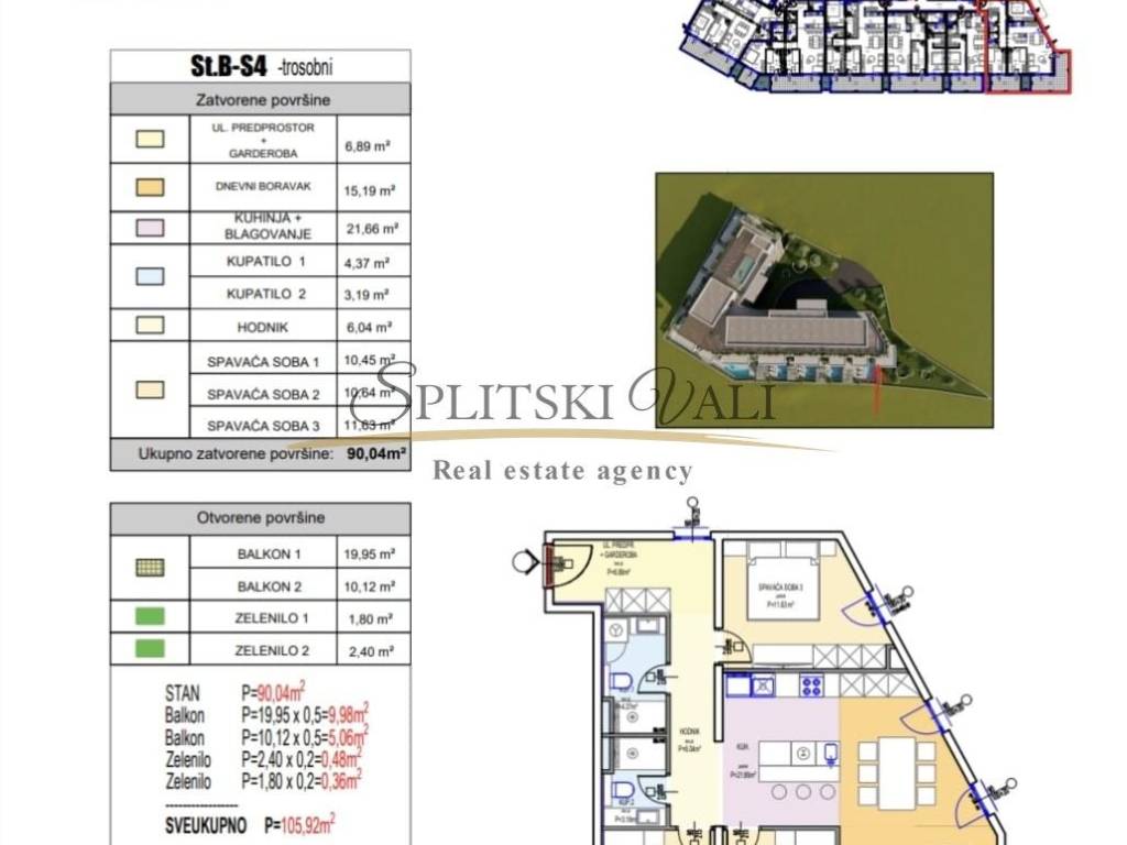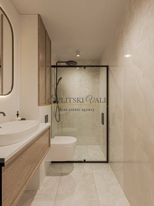 Posredujemo u prodaji luksuzne novogradnje na Duilovu. Prodaje se trosobni stan unutrašnje površine 90m2,a s balkonima ukupna stambena površina iznosi 106 m2. Stan se sastoji od 3 spavaće sobe, dvije kupaonice, kuhinje s blagovaonicom, dnevnog boravka i dva balkona. Orijentacija stana je jug-istok, nalazi se u prizemlje u naravi visina prvog kata otvorenog pogleda na more i velikih staklenih stijenki koje pružaju mnogo osvjetljenja tokom dana. Moguća je kupnja parking mjesta u garaži. Kupac plaća posredničku naknadu od 2%+pdv.