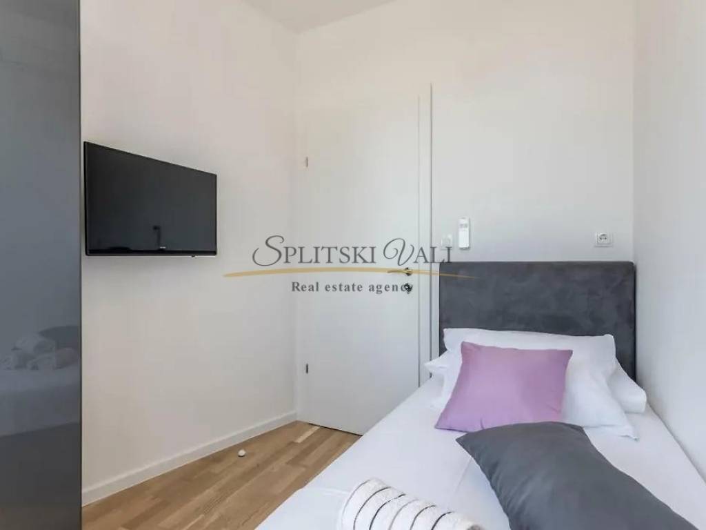 Posredujemo u prodaji luksuznog dvosobnog stana na odličnoj lokaciji u Splitu - Split 3! Stan se nalazi na četvrtom katu stambeno - poslovne zgrade s liftom. Cijeli stan je južno orijentiran! Osim dvije spavaće sobe, stan se sastoji od predsoblja, kupatila s podnim grijanjem, kuhinje s blagovaonicom, dnevne sobe te velike prostrane terase s pogledom na more. Svaka soba kao i dnevni dio je klimatizirana te sa vlastitom televizorom. U cijeni dva garažna mjesta.