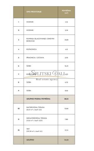 Stan 1 nalazi se na visini prizemlja te se prostire na 114.53m2 netto površine, 80.33m2 unutarnje površine.