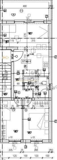 Stan ima 50,27 m + balkon (8,82 m) i sastoji se od kuhinje s dnevnim boravkom, hodnika, dvije spavaće sobe i kupaonice.