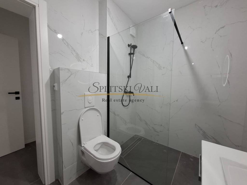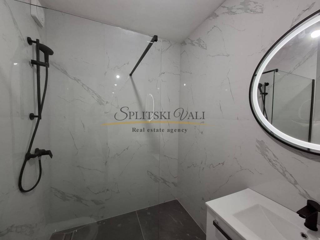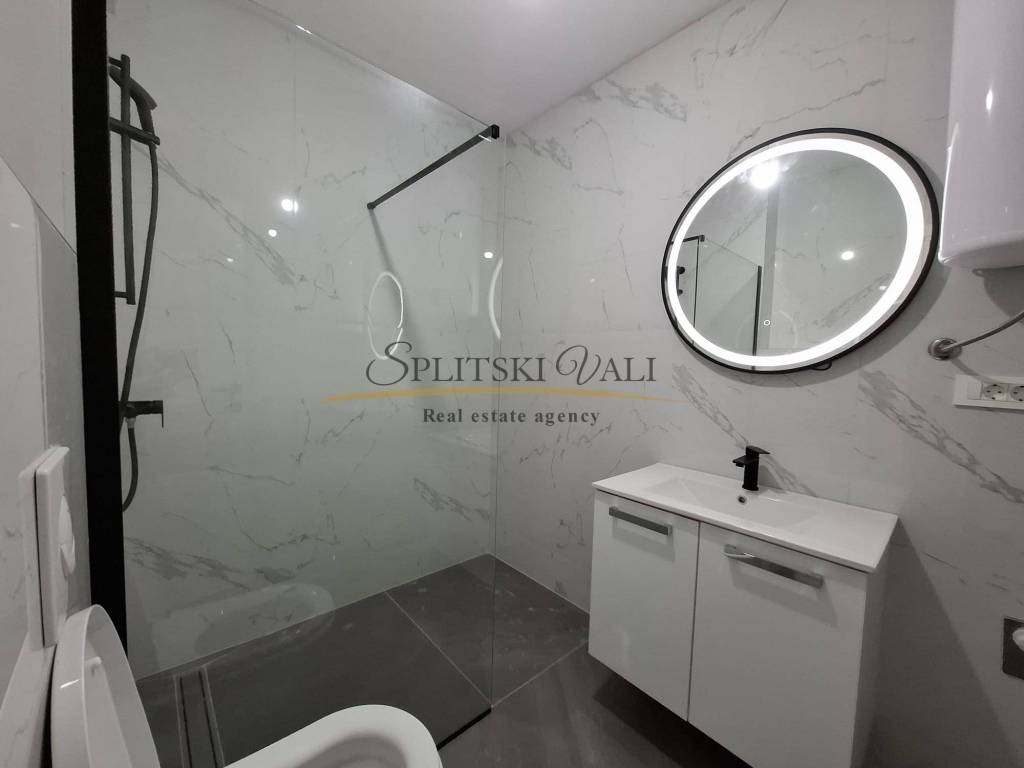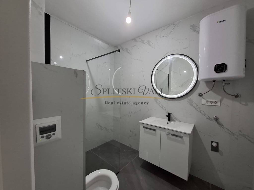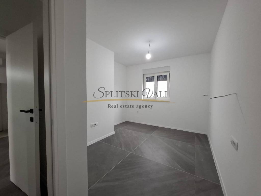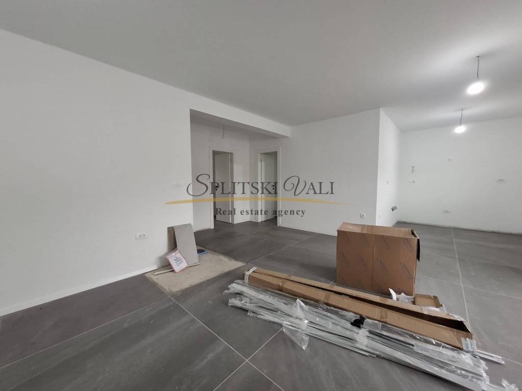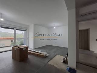 Prodaje se stan u novogradnji u mjestu Poljica, u blizini Trogira. Stan se prodaje nenamješten i može se urediti prema vlastitim preferencijama. Sastoji se od ulaznog prostora, open space dnevnog boravka s kuhinjom i blagovaonicom s izlazom na balkon. Uz stan pripada krovna terasa koja je isključivo u vlasništvu stana. Stan ima dvije spavaće sobe, kupaonicu i degažman. U dnevnom boravku je ugrađena klima, a u kupaonici je provučeno podno grijanje. U cijenu je uključeno parkirno mjesto. Stan ima pogled na more.