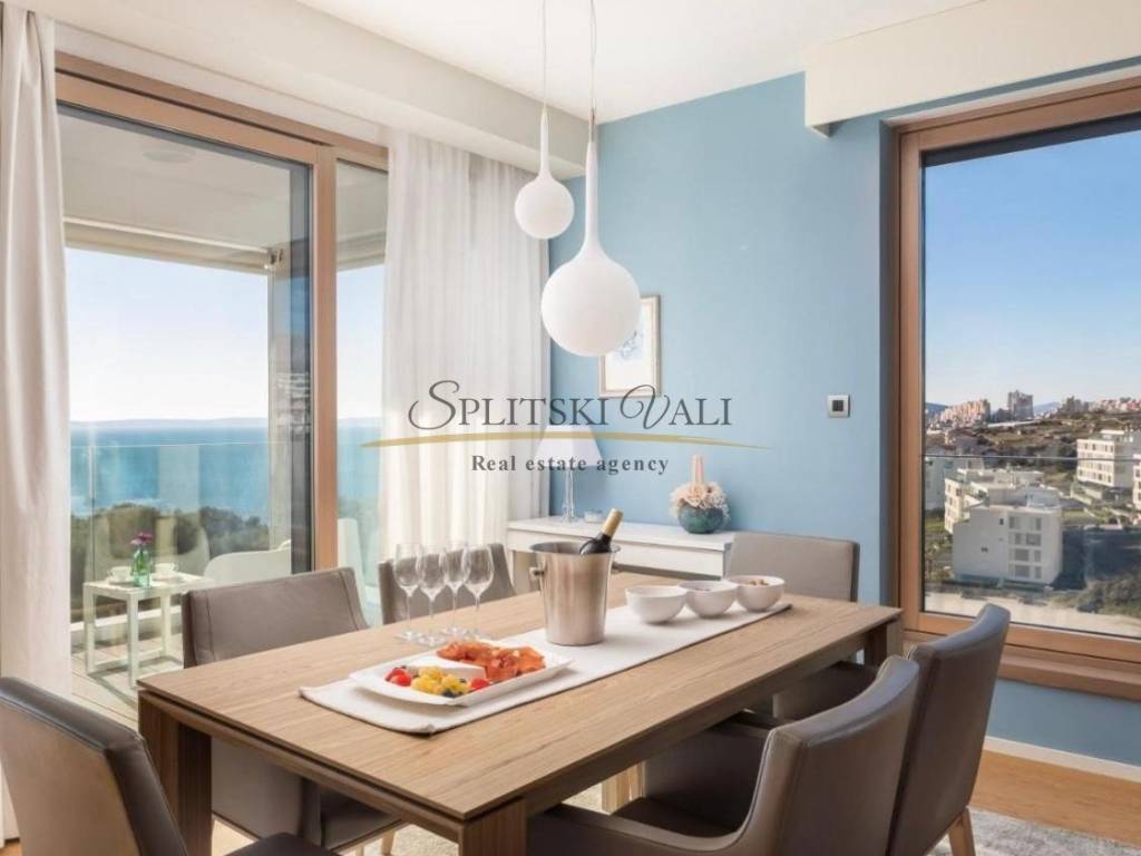 Osim dvije spavaće sobe, stan se sastoji od open space kuhinje s blagovaonicom te dnevne sobe, kupatila, wc-a hodnika te komforne lođe s otvorenim panoramskim pogledom na more i otoke.