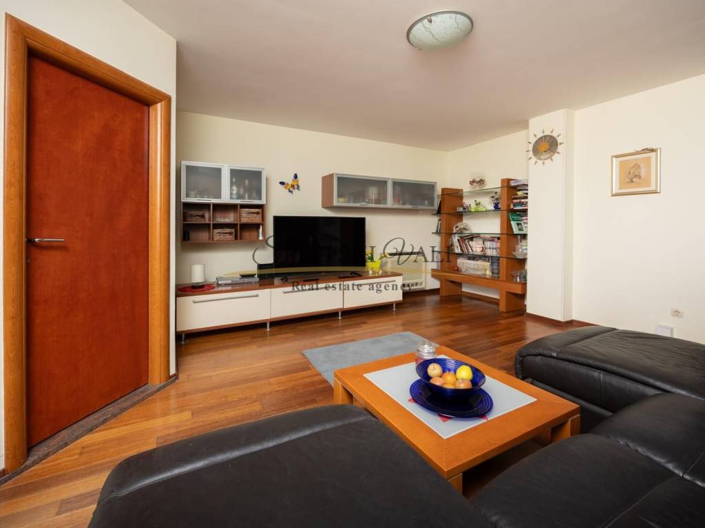 Stan ukupne površine 126,25 m2 sastoji se od: predulaza sa velikim ormarom, hodnik, 3 spavaće sobe, 1 radna soba, 2 kupatila, kuhinja s blagovaonom, dnevni boravak, zatvorena loggia. Garaža od 32 m2 površine, za dva auta - u prizemlju zgrade.