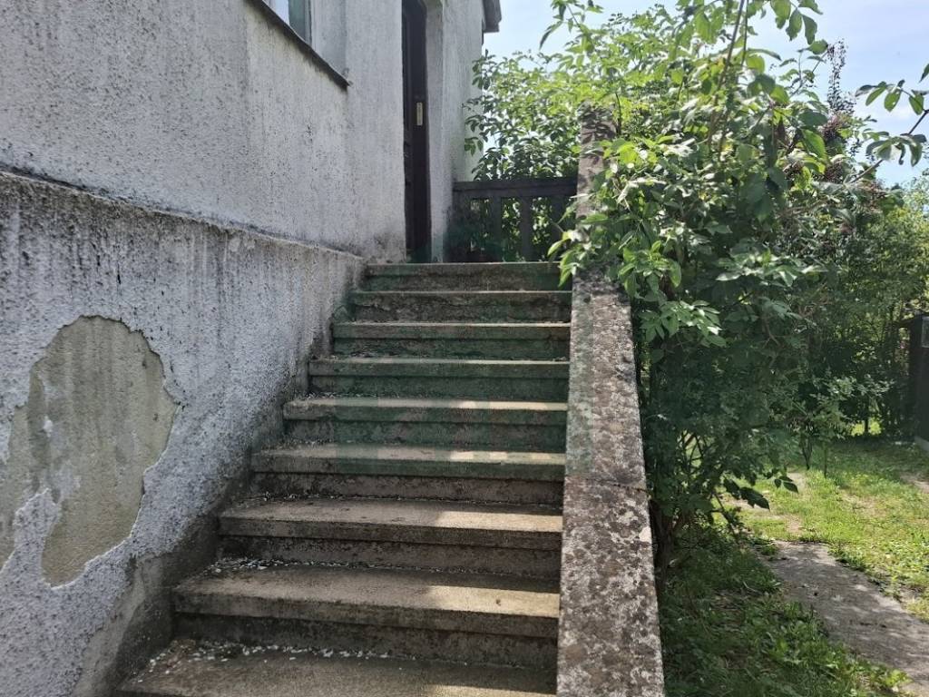 The house was built in the 1950s. New exterior PVC windows have been installed on the basement veranda. The floors are wooden with beams, without a concrete slab. The roof is tiled.